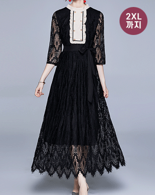 무료배송 / 리아노 페미닌 블랙 레이스 롱원피스 2XL까지