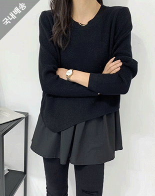 국내배송 / 트리니티 러플 레이어드 언발 니트 3컬러