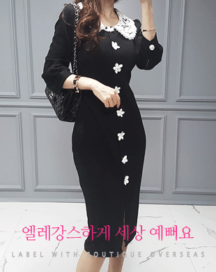 국내배송 / 스크래치특가 C명품 레이스 카라 꽃 버튼 원피스