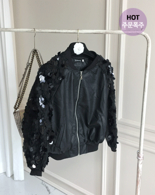 무료배송 / 아레스 스팽글장식 볼륨 레더 점퍼