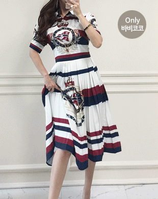 무료배송 / 맨체스터 카라 셔츠 플리츠 원피스