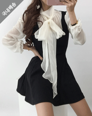 - 국내생산 / 수아르 로맨틱 쉬폰 블라우스 탑 플레어 원피스