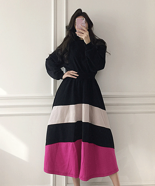 국내제작 / 샬라라 맨투맨 밴딩 롱원피스