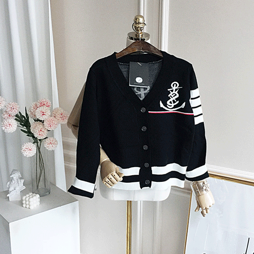 메토 마린 배색 가디건