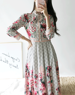 무료배송 / 샤르트 플로랄 리본 맥시 롱원피스