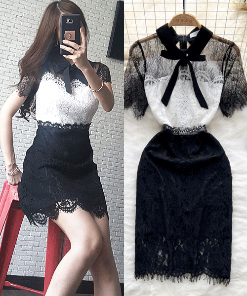 무료배송 / 포트 시스루 탑 레이스 원피스
