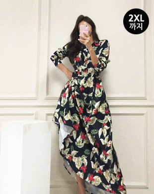 [2XL까지] 셀렌트 리프 엘레강스 롱 셔츠 원피스