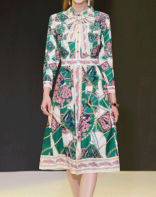 올리비에 리본 플로랄 플레어 원피스