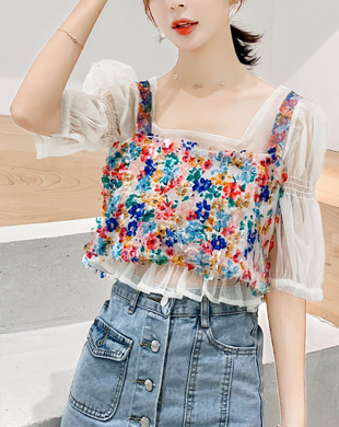 - [2XL까지] 플로리 시스루 뷔스티에 탑 세트 / 시스루 블라우스, 시스루셔츠, 오버핏블라우스, 청담동며느리, 시스루블라우스, 리넨블라우스, 40대원피스, 미시원피스, 수입여성의류, 중년여성원피스, 모임룩