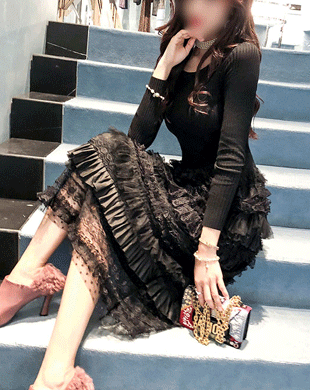 - [단독제작] 골지탑 캉캉 레이스 롱 원피스