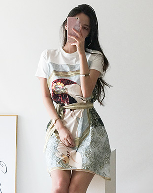 크리스티 여인 일러스트 티셔츠탑 원피스