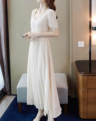- 로랑 진주버튼 볼륨소매 롱원피스 / 돌잔치원피스, 맘드레스, 여성스런원피스, 하객룩, 명품스타일, 청담동며느리, 레이스원피스, 모임룩, 중년여성원피스, 40대원피스, 모임룩, 중년여성원피스, 여름원피스