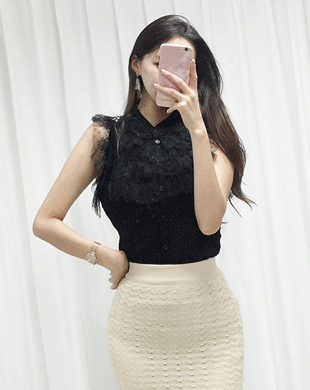- [국내배송] 셀로라 프릴 가디건 니트 탑