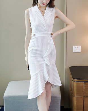- 슈메르 스트라이프 러플 오피스 원피스 / 돌잔치원피스, 맘드레스, 스트라이프원피스, 하객룩, 명품스타일, 청담동며느리, 레이스원피스, 모임룩, 중년여성원피스, 40대원피스, 모임룩, 중년여성원피스, 여름원피스