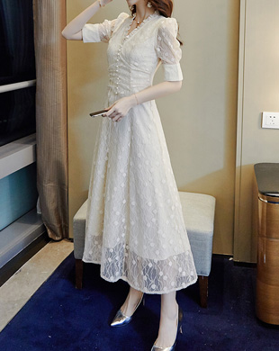 - 디메르 진주버튼 레이스 롱 원피스 / 돌잔치원피스, 맘드레스, 여성스런원피스, 하객룩, 명품스타일, 청담동며느리, 레이스원피스, 모임룩, 중년여성원피스, 40대원피스, 모임룩, 중년여성원피스, 여름원피스