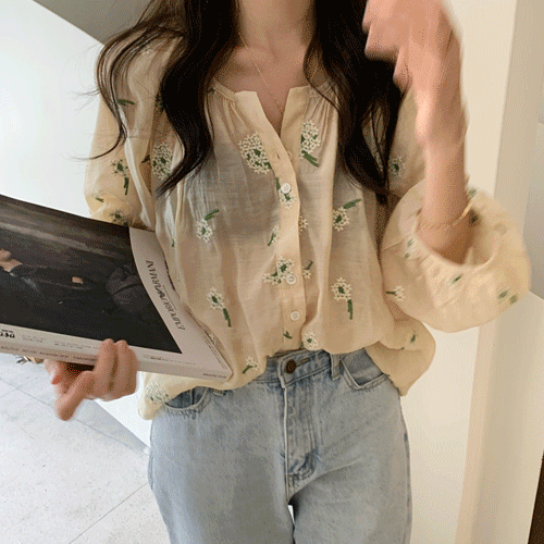 국내배송 / 노엘 꽃자수 하늘하늘 볼륨 블라우스