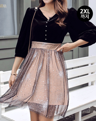 - 무료배송 / 릴리 벨벳탑 샤이닝 플레어 원피스 2XL까지