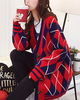 - 아가일 체크 오버핏 니트 가디건 / G가디건, 구가디건, 에르메가디건, 명품가디건,루즈핏가디건, 명품스타일여성의류, 가디건자켓, 수입가디건, 미시룩, 니트가디건, 수입가디건, 미시룩, 홍콩수입보세