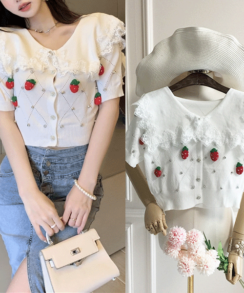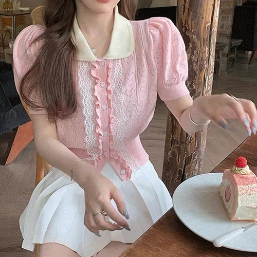 패리스 프릴 카라 반팔 가디건
