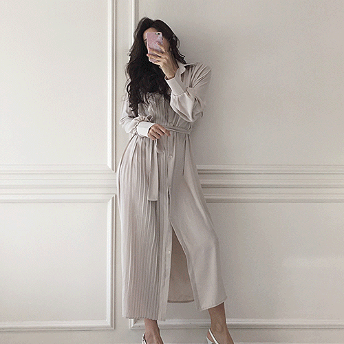국내생산 / 랑방 플리츠 오버핏 롱 셔츠 원피스