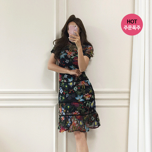 무료배송 / 부에노스 스페니쉬 플로랄 자수 시스루 원피스 2XL까지