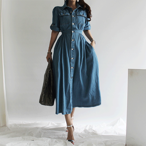 세잔 하이퀄리티 풍성한 햅번 데님 원피스