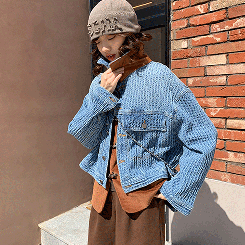 시몬 유니크 패턴 데님 자켓