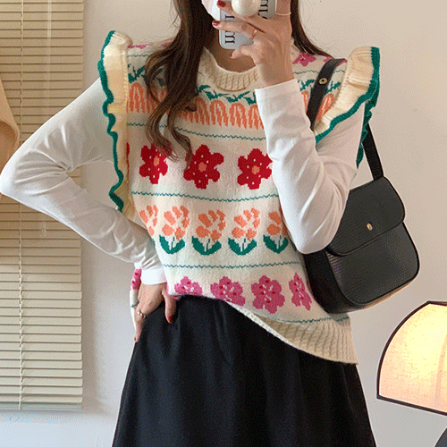 레베카 프릴 빈티지 니트 조끼