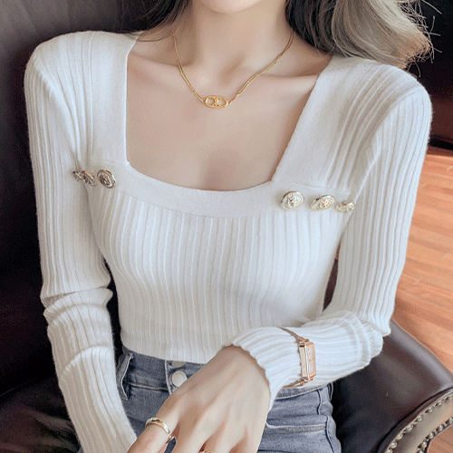 당일 / 케이트 볼륨소매 체인 페미닌 반팔 니트