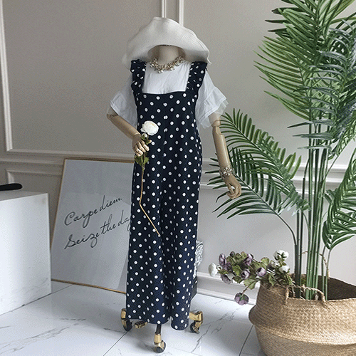 국내제작 / 레미 도트 프릴 루즈핏 점프수트