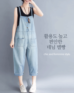 [2XL까지] 빈티지 포켓 멜빵 데님 팬츠