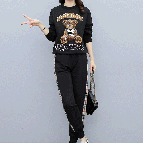 리오베 컬러배색 니트 집업 트레이닝 세트