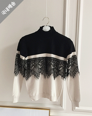 무료배송 / 제니퍼 레이스 트리밍 배색 페미닌 니트