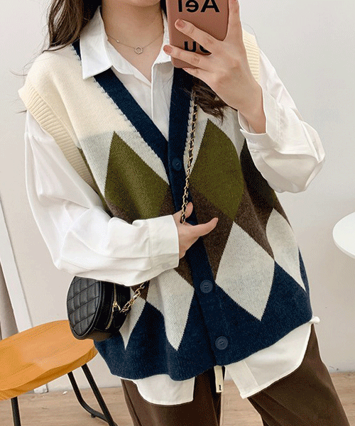 당일발송특가 / 컬리 빅다이아 니트 조끼 가디건