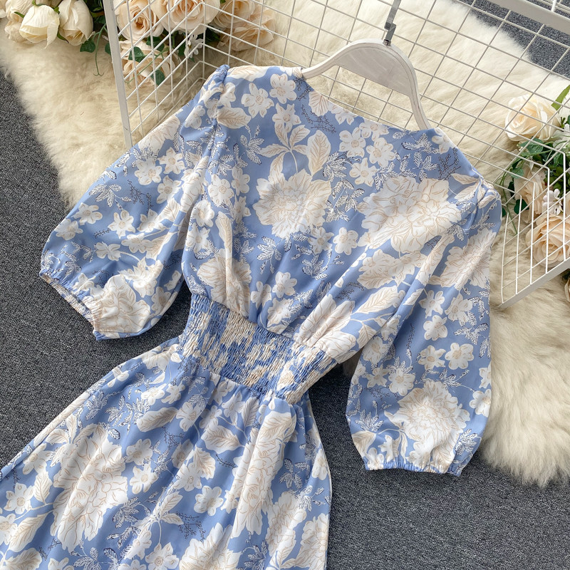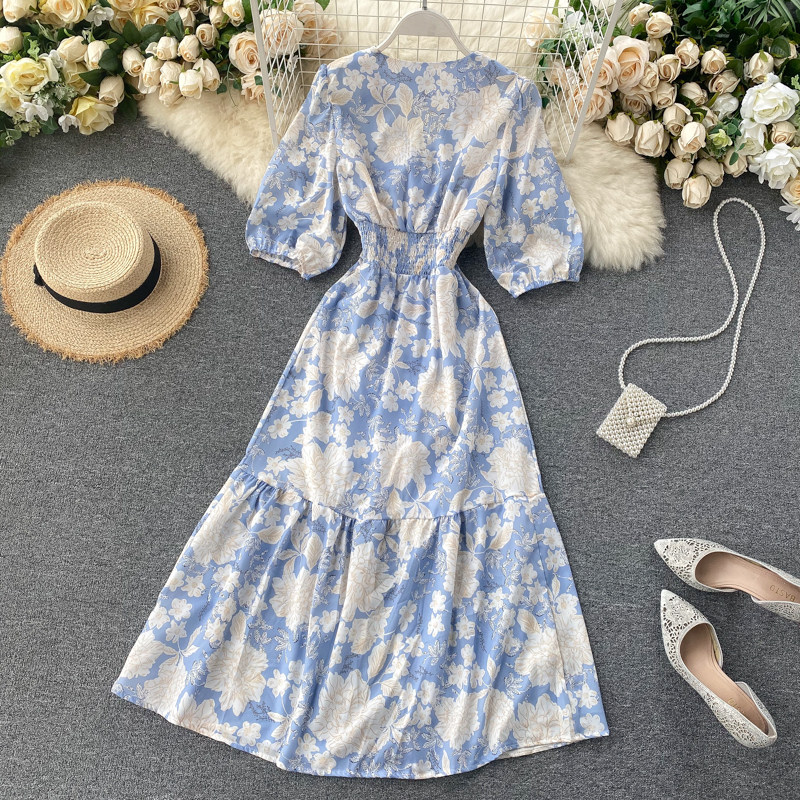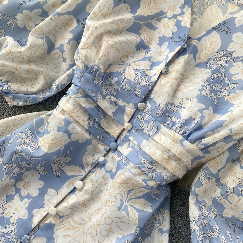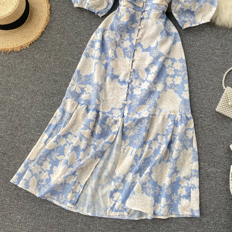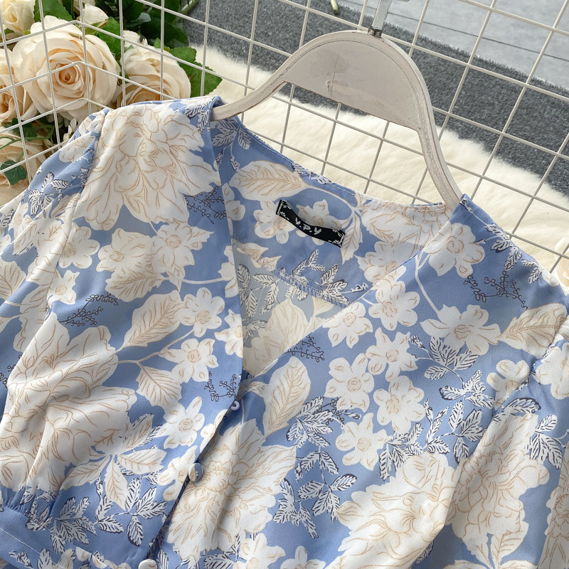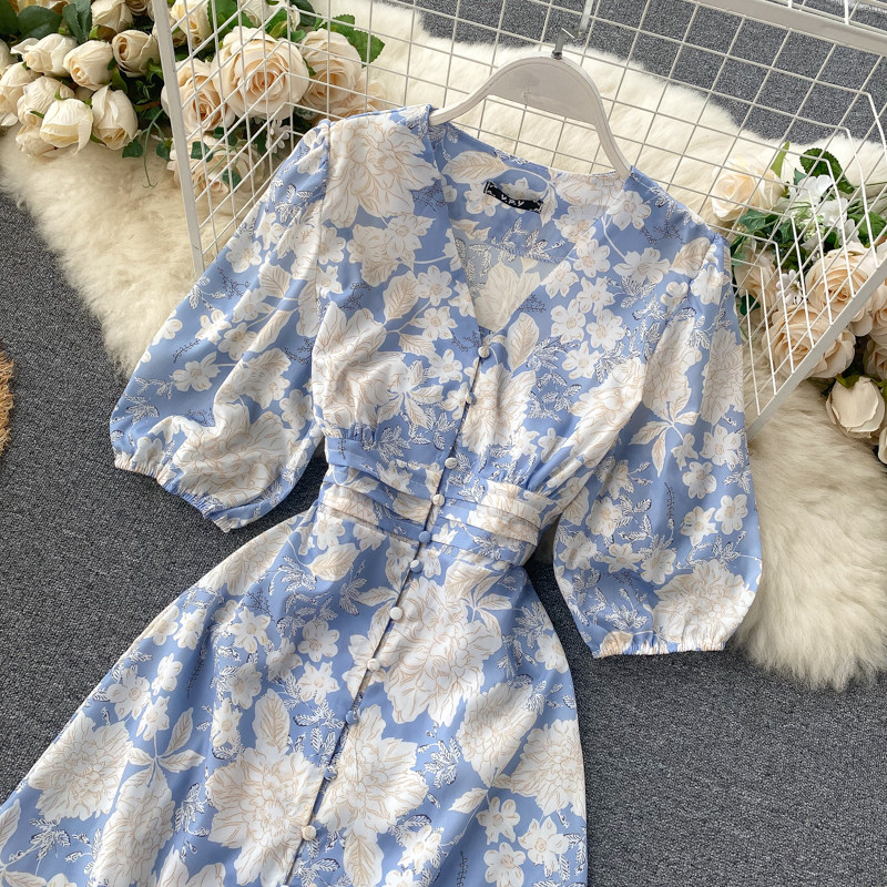 무료배송 / 브레시 파스텔블루 딥브이넥 콩단추 롱원피스 / 김보민 원피스