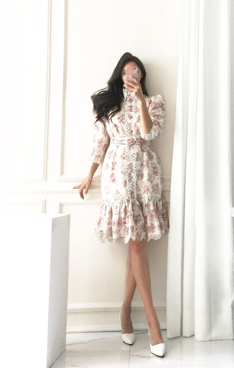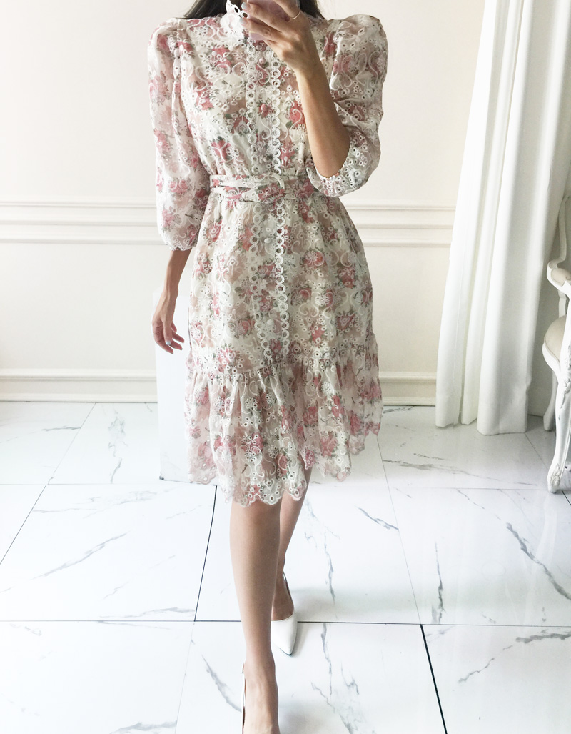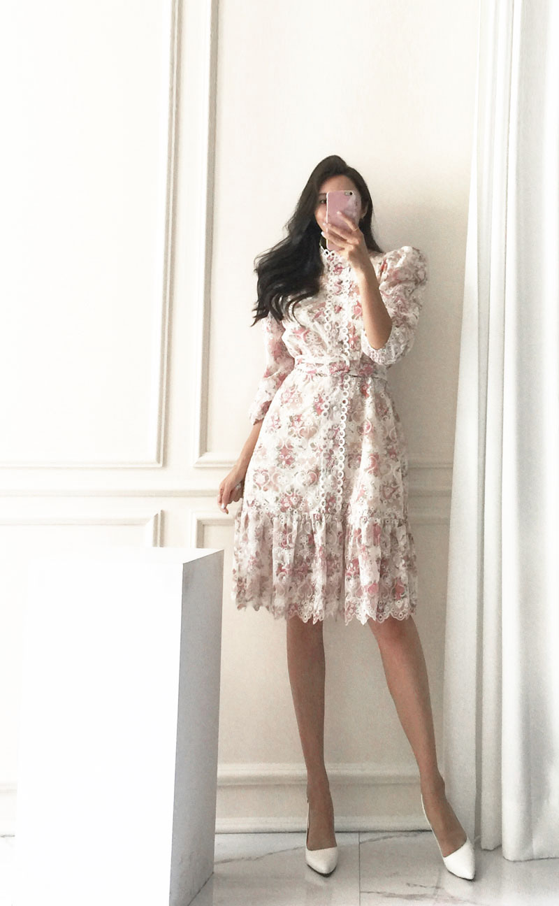 벨마리 로즈 펀칭 자수 벨트 원피스 - - 빅사이즈 88사이즈까지