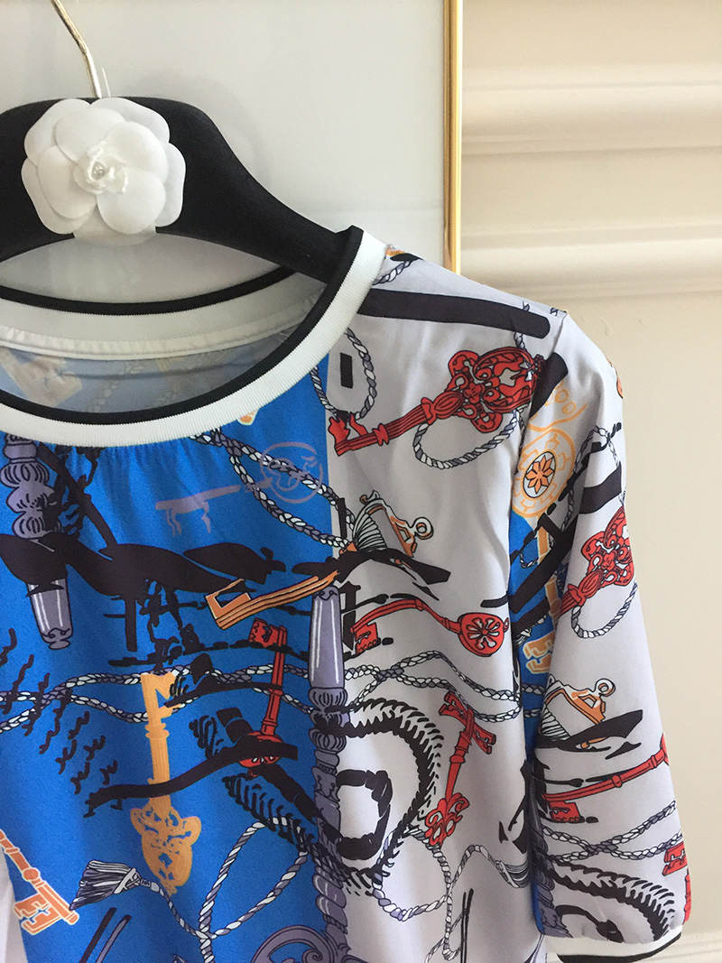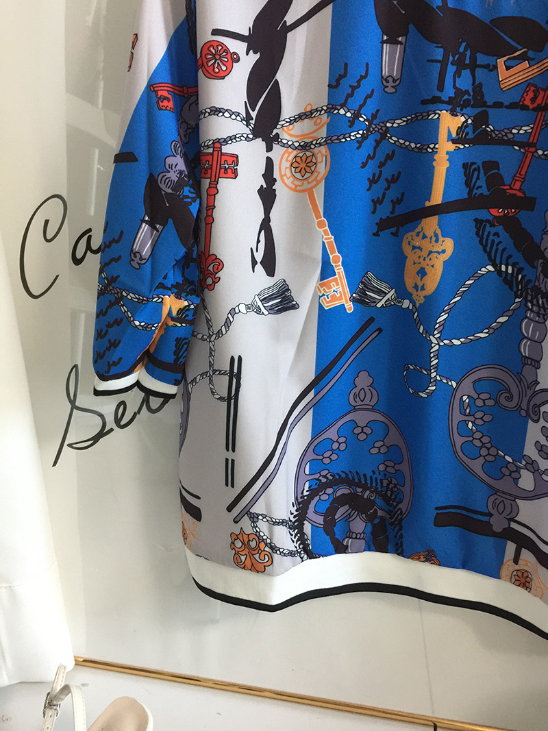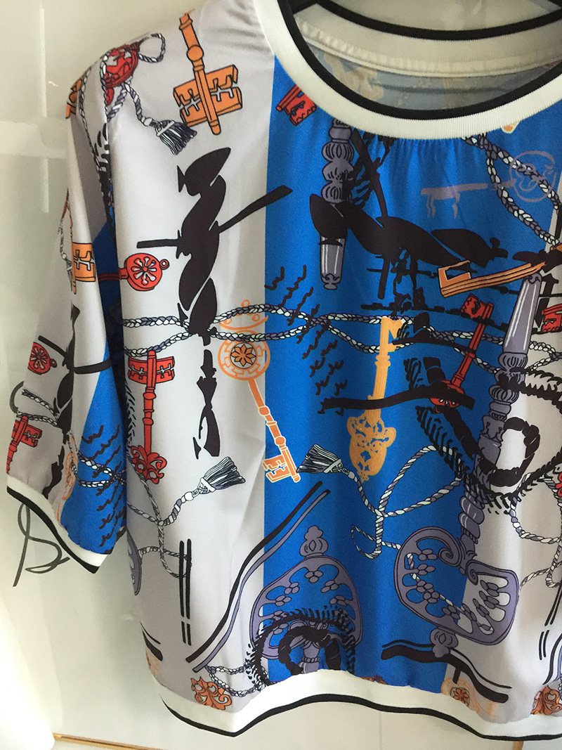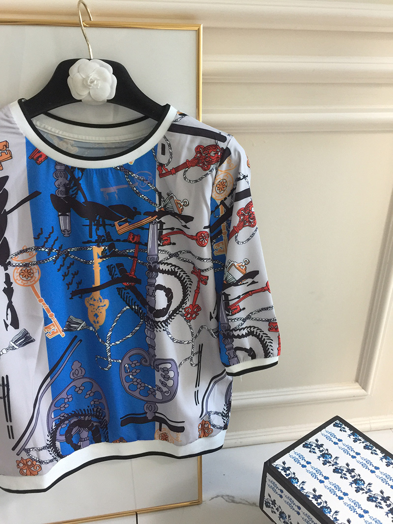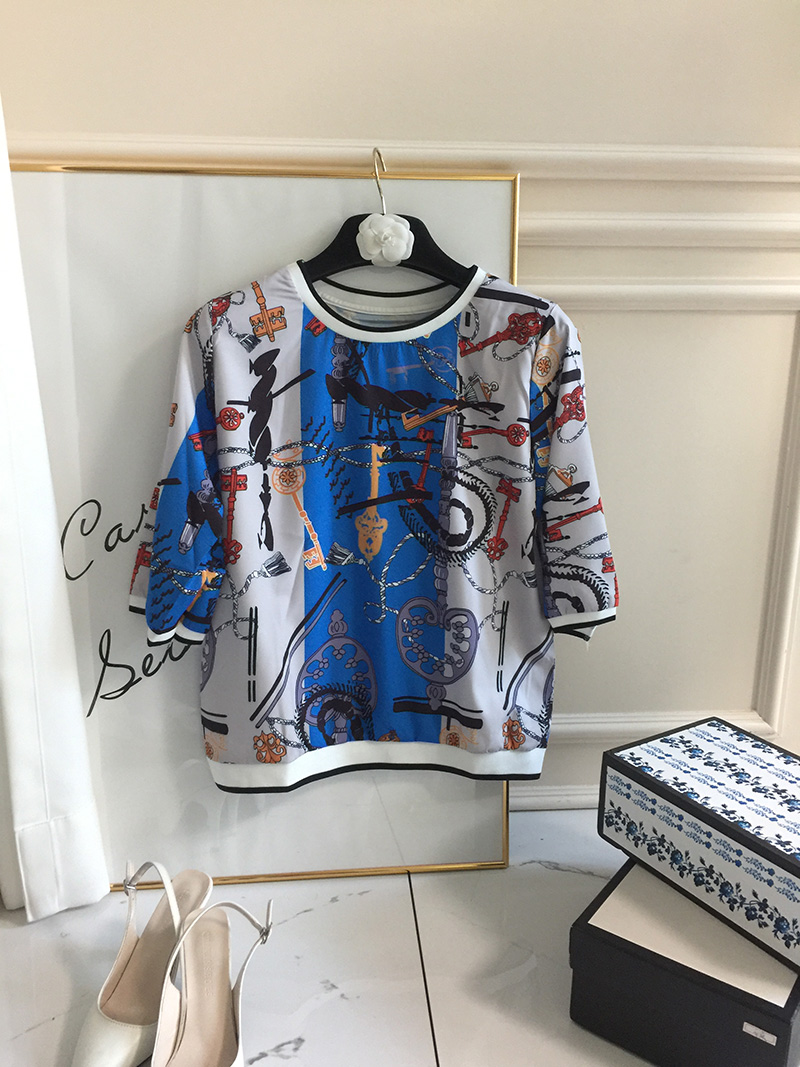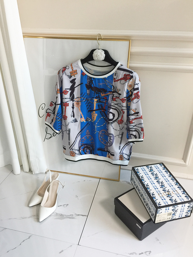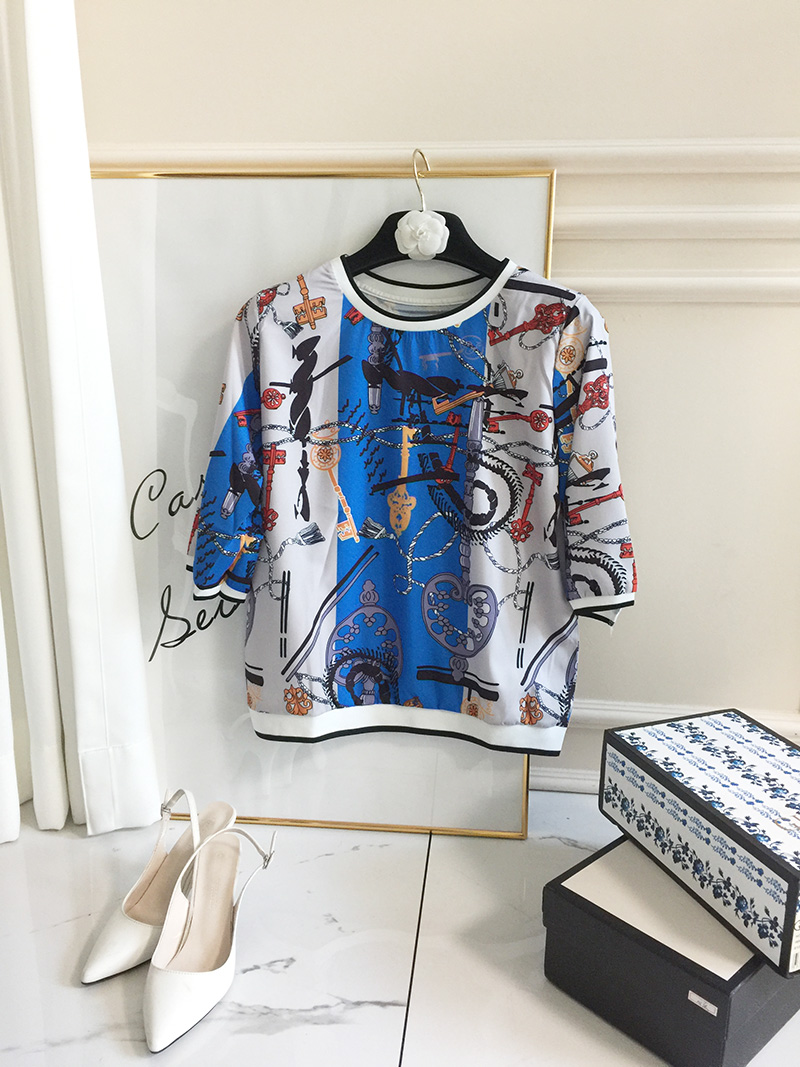 몬첼라토 블루 럭스 패턴 블라우스 티셔츠