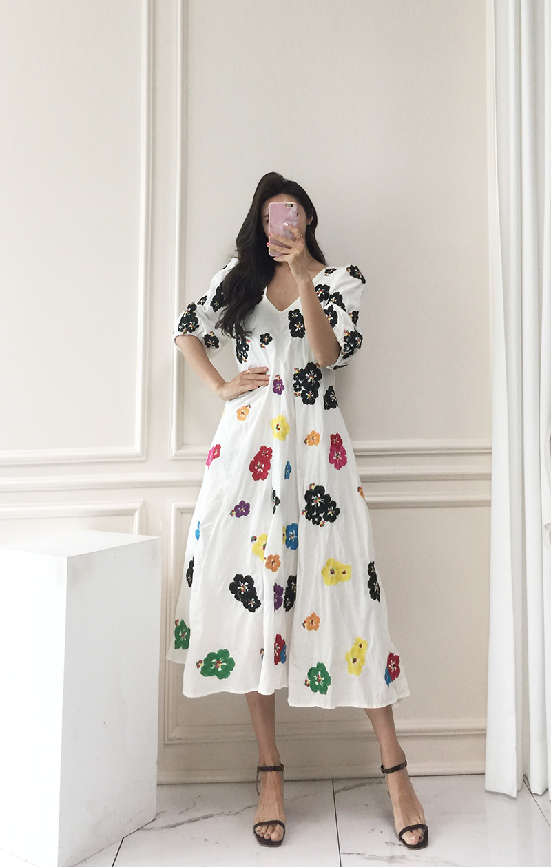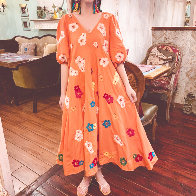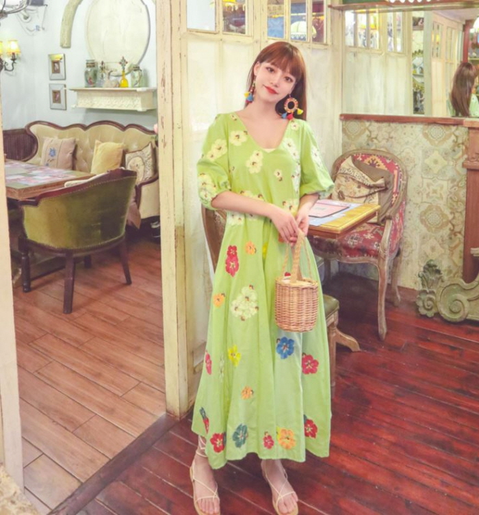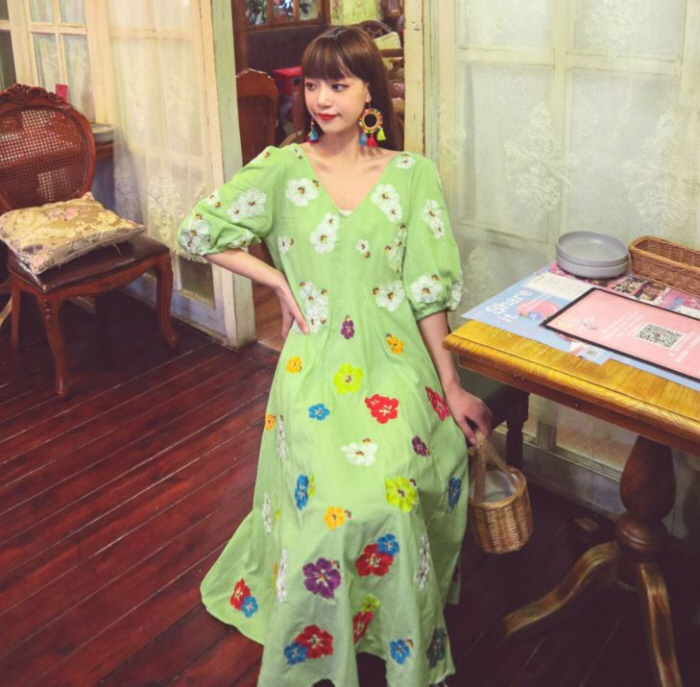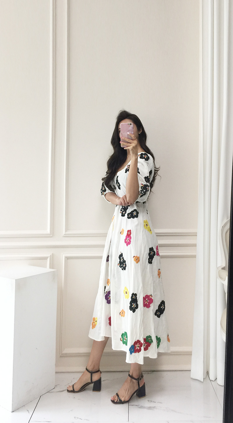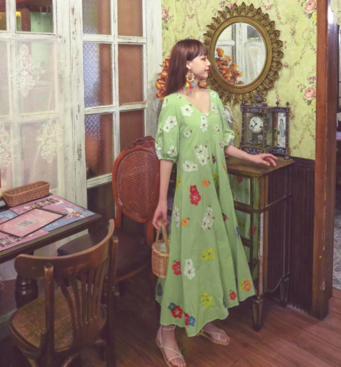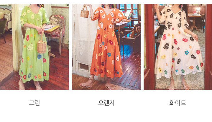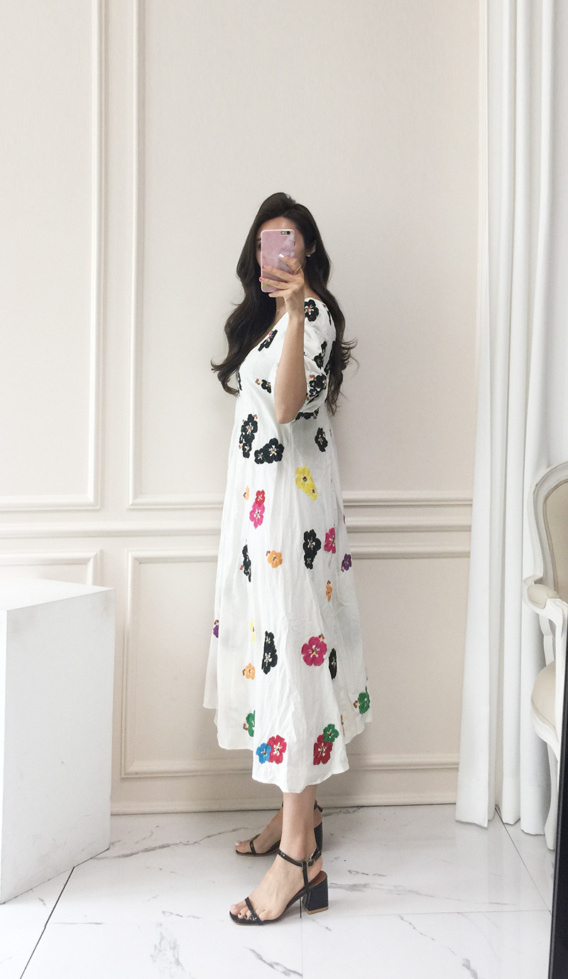 무료배송 / 베니아 꽃자수 볼륨소매 린넨 롱원피스