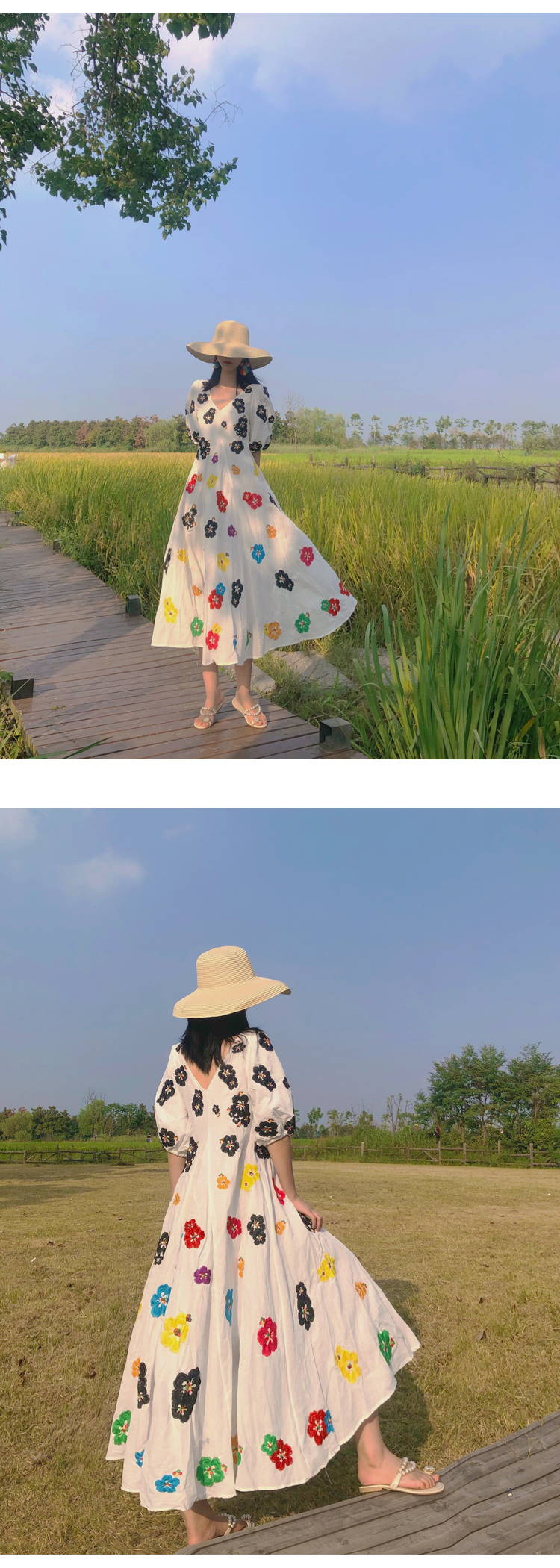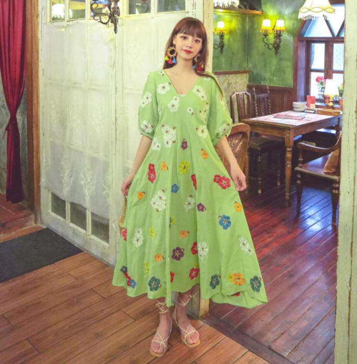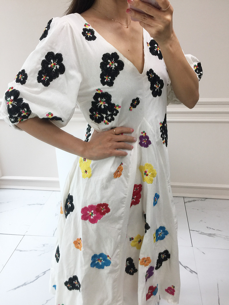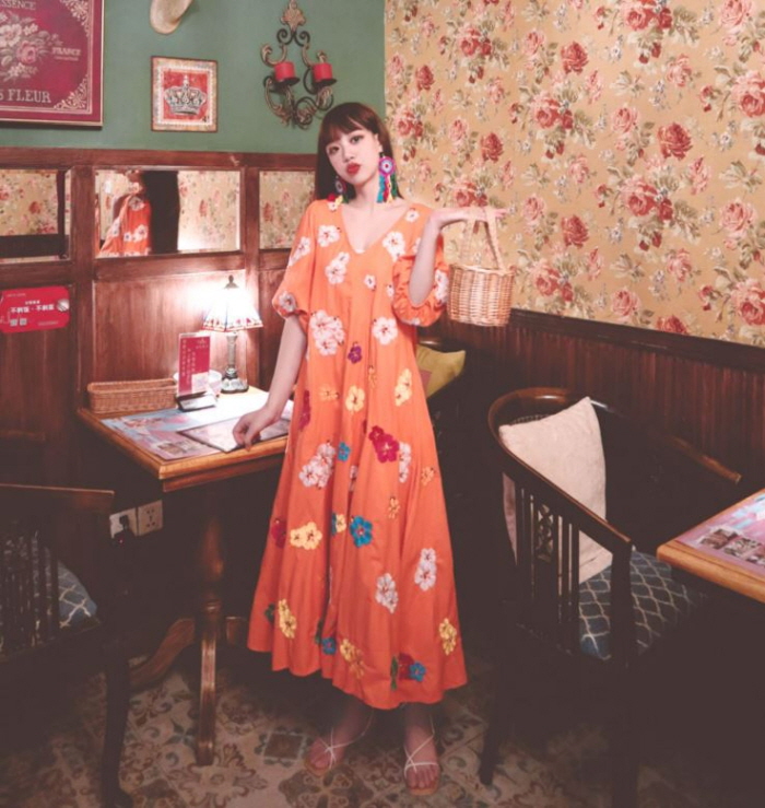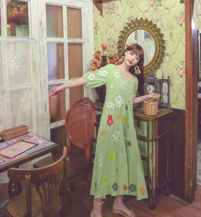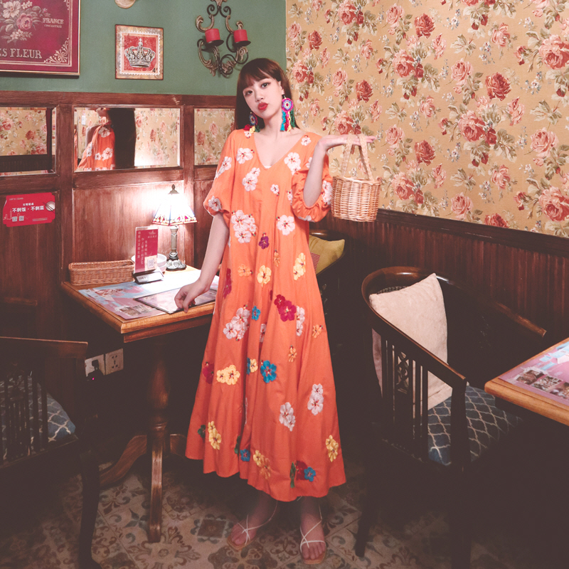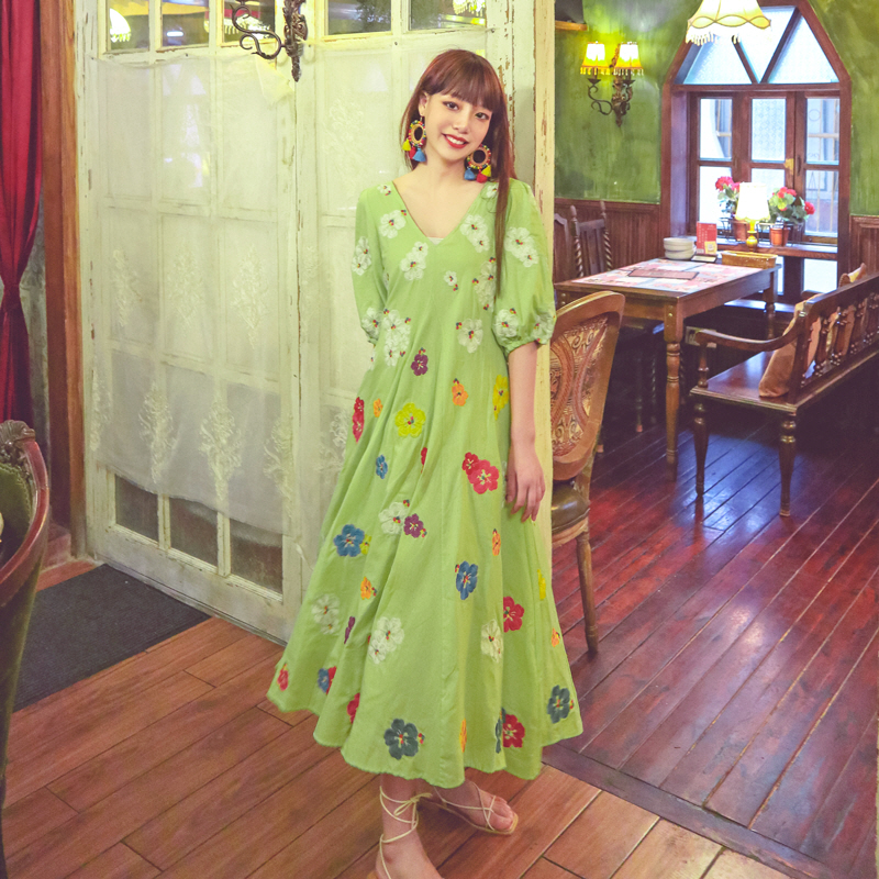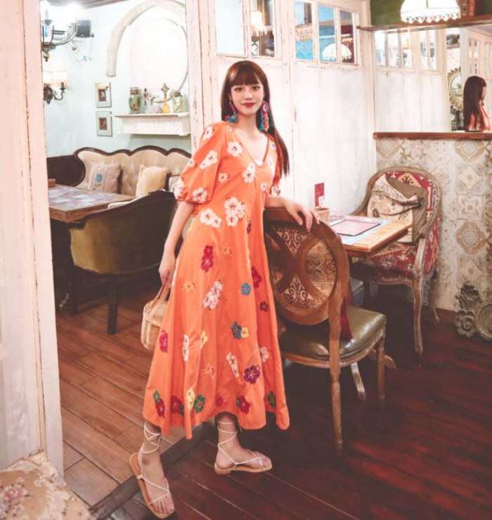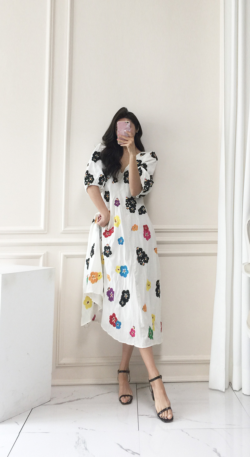 무료배송 / 베니아 꽃자수 볼륨소매 린넨 롱원피스
