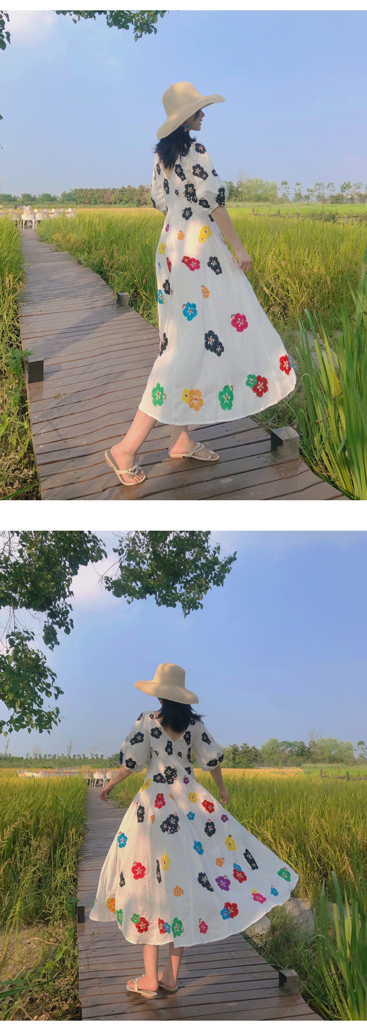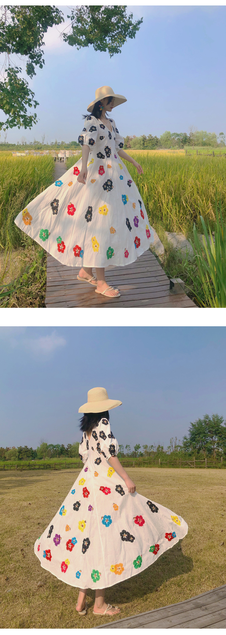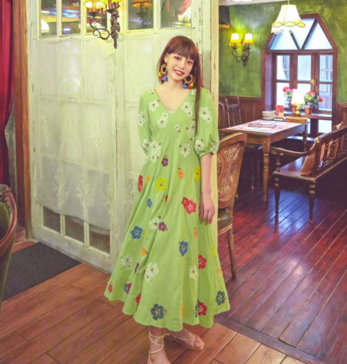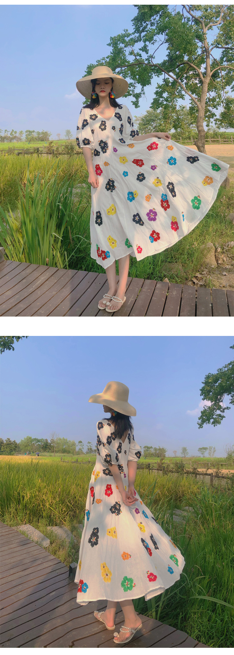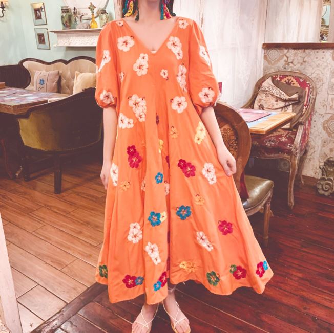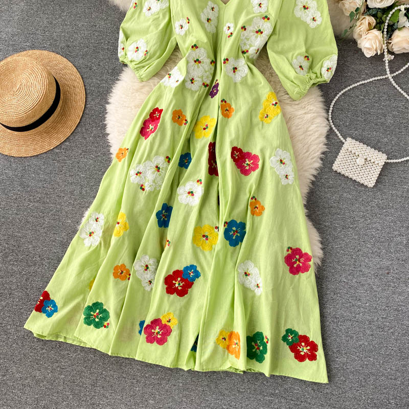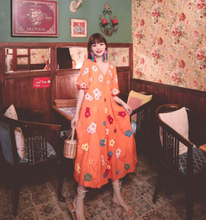 무료배송 / 베니아 꽃자수 볼륨소매 린넨 롱원피스