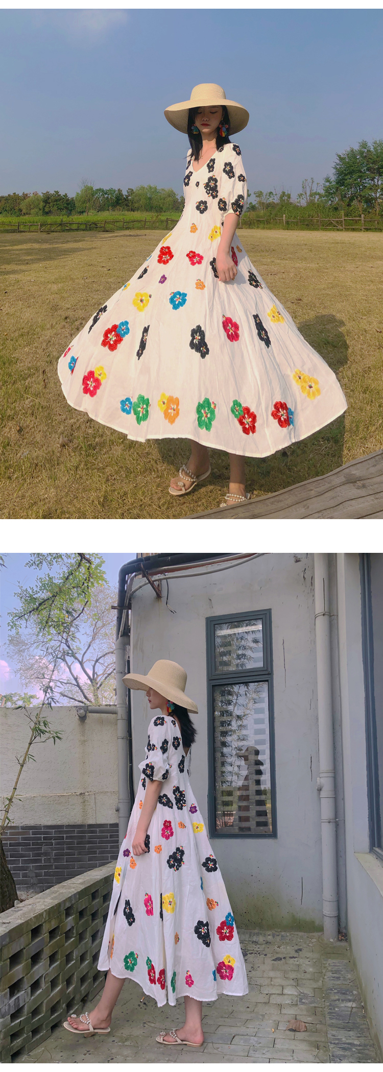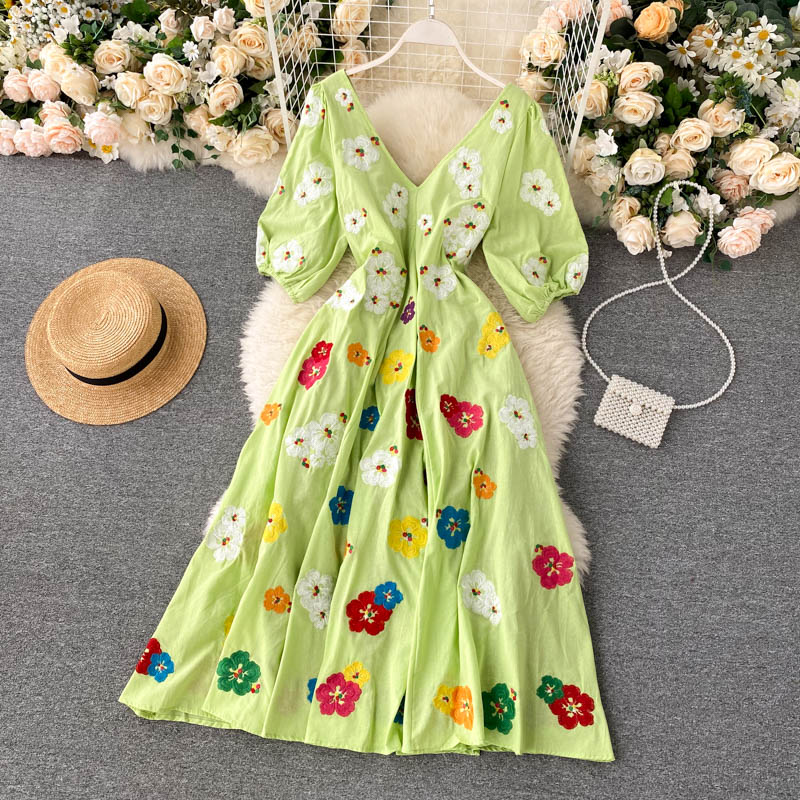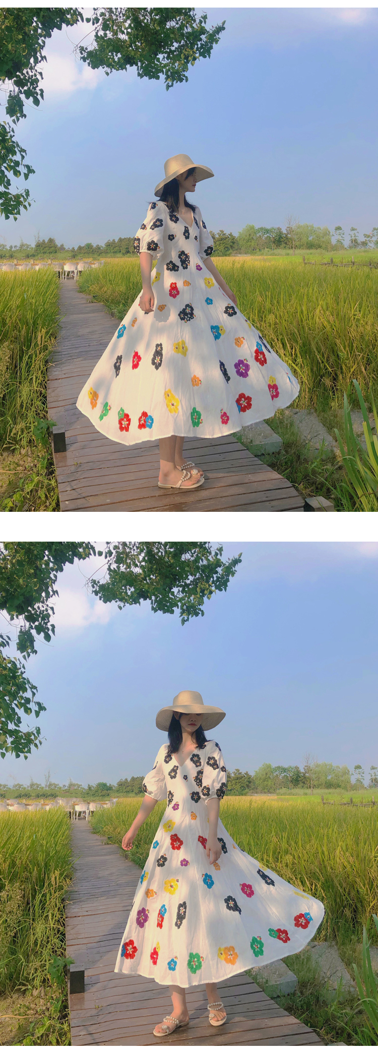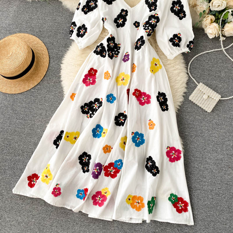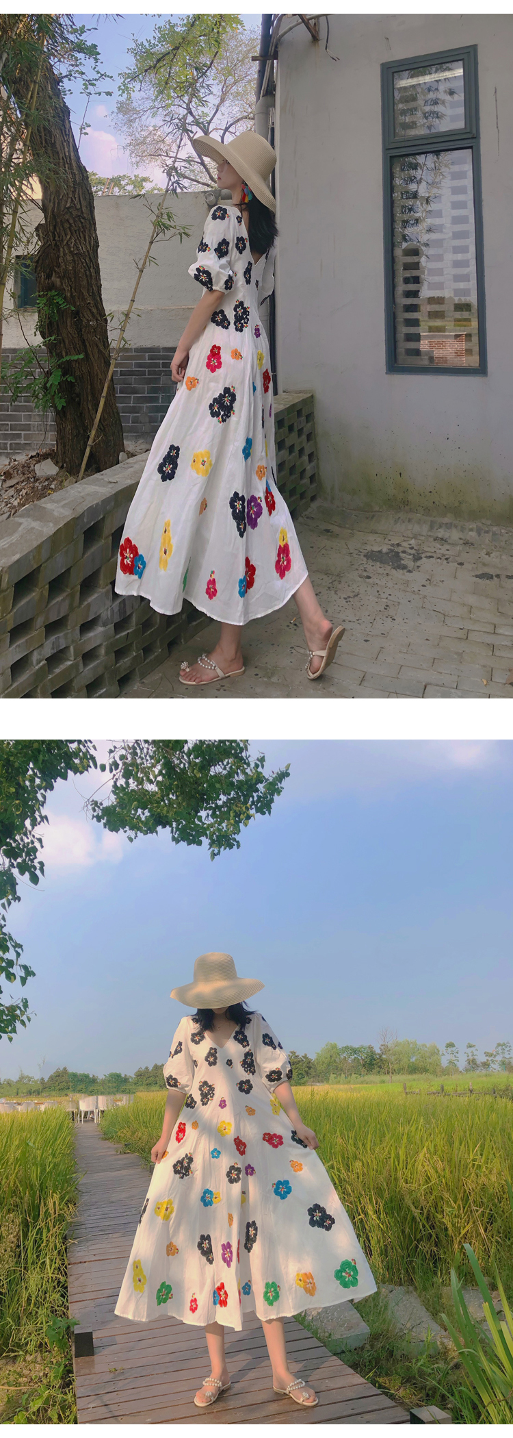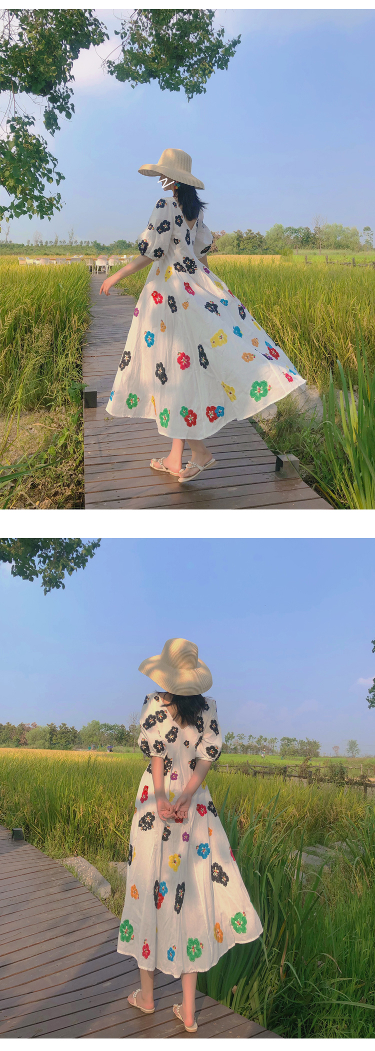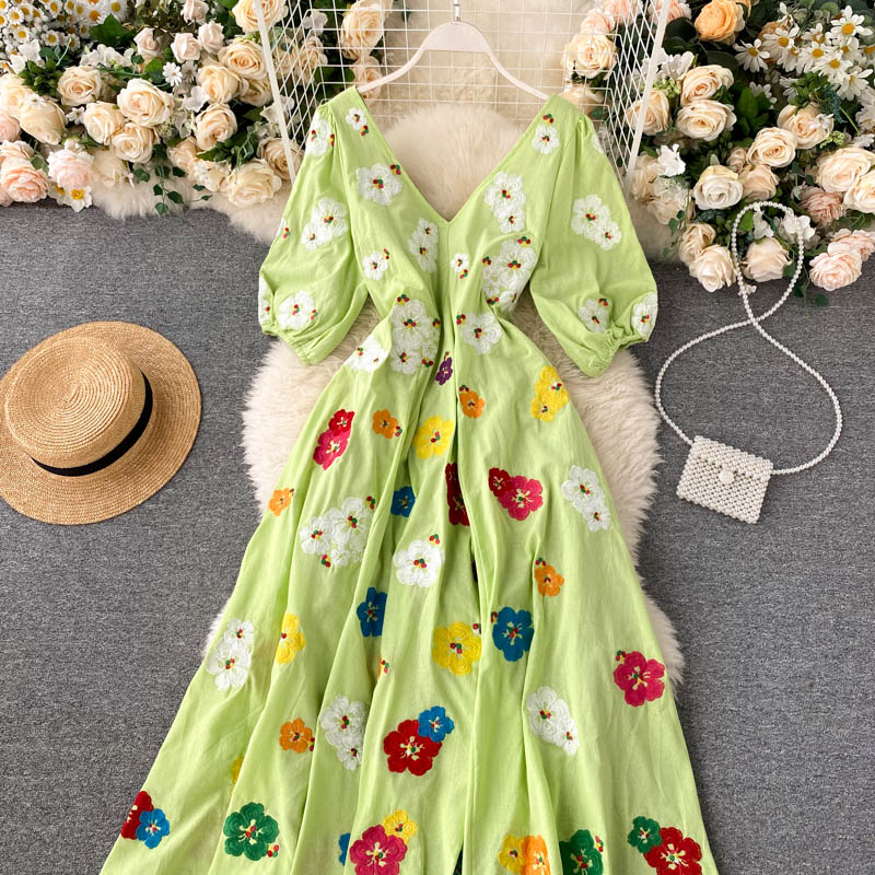 무료배송 / 베니아 꽃자수 볼륨소매 린넨 롱원피스