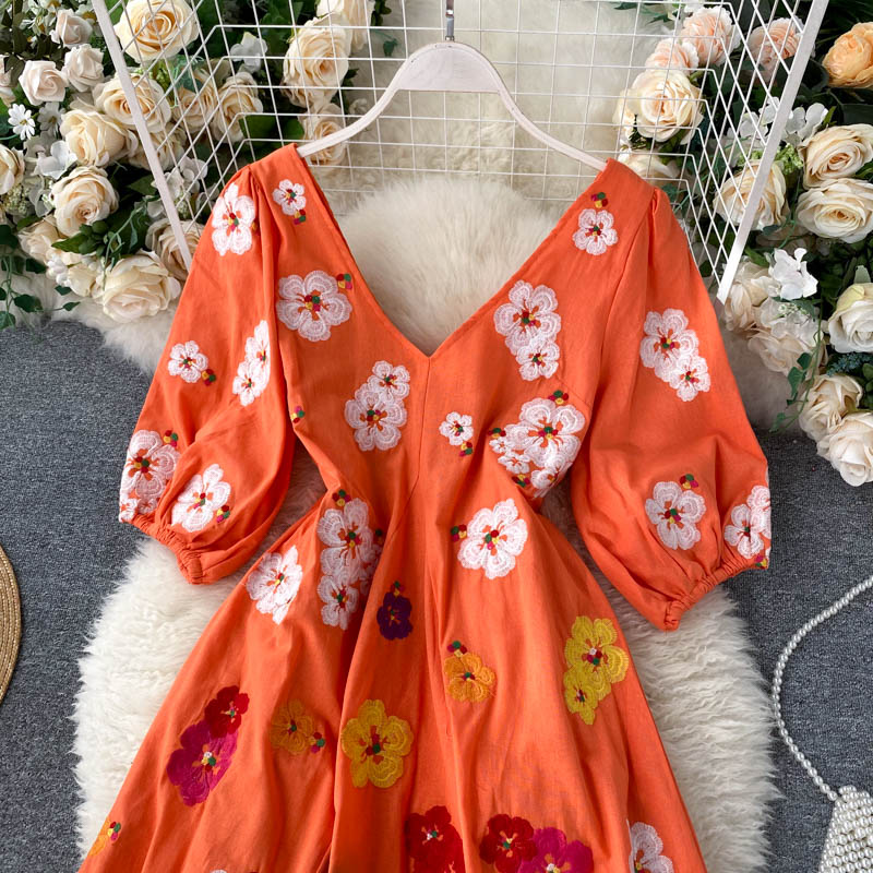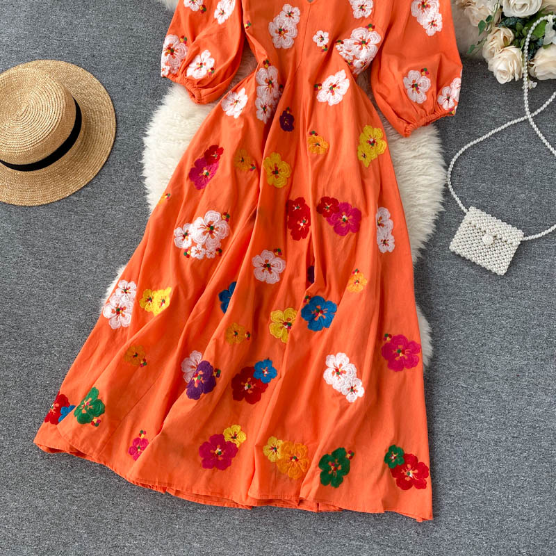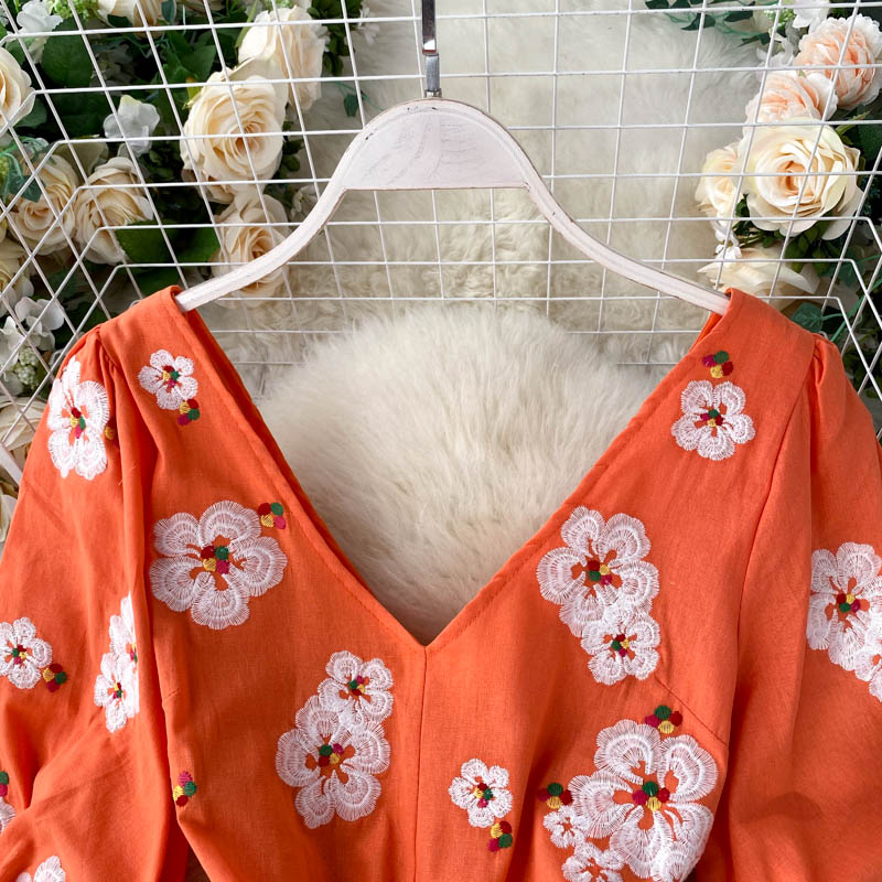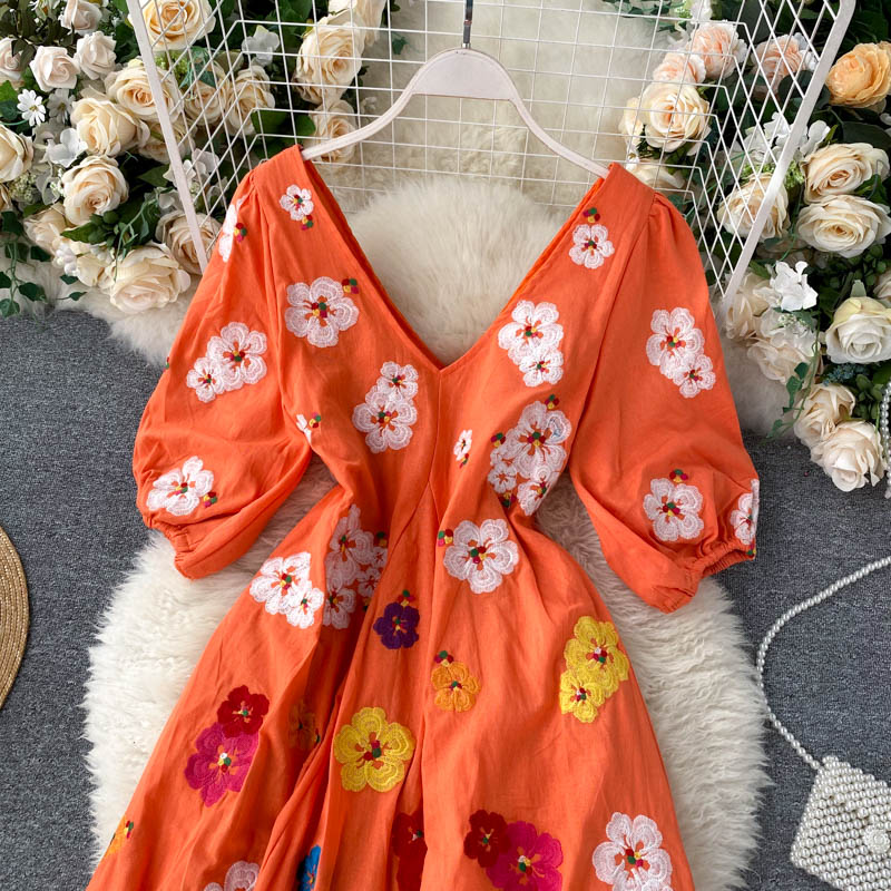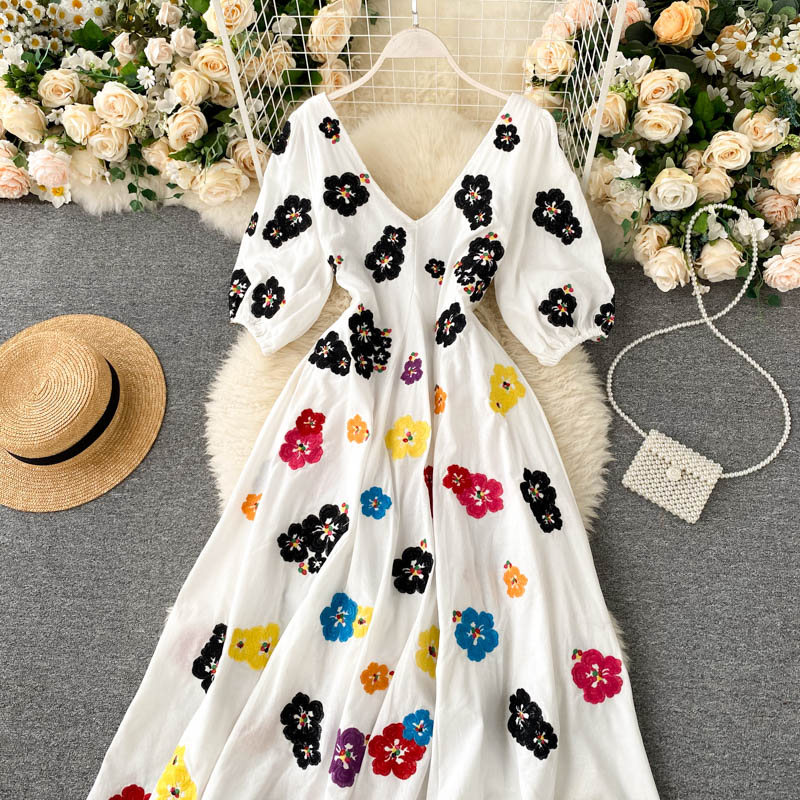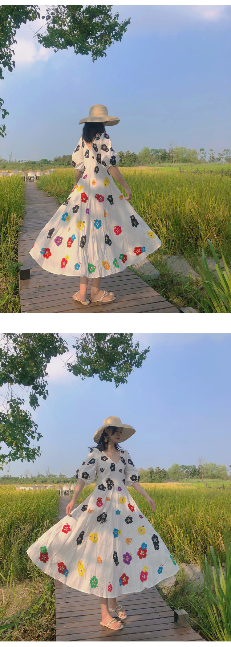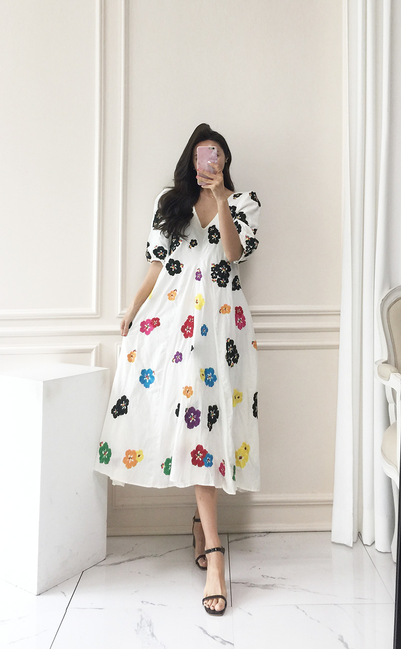 무료배송 / 베니아 꽃자수 볼륨소매 린넨 롱원피스