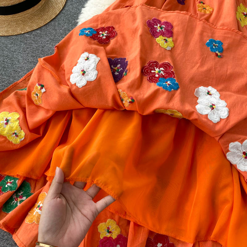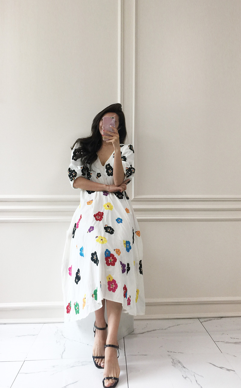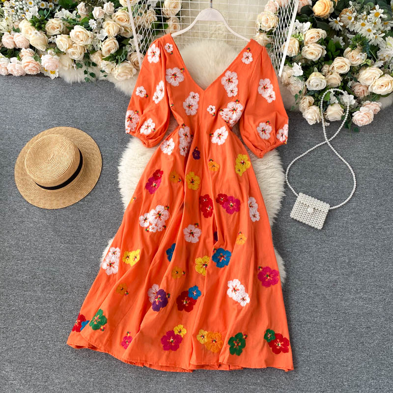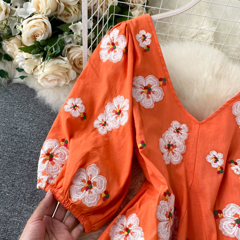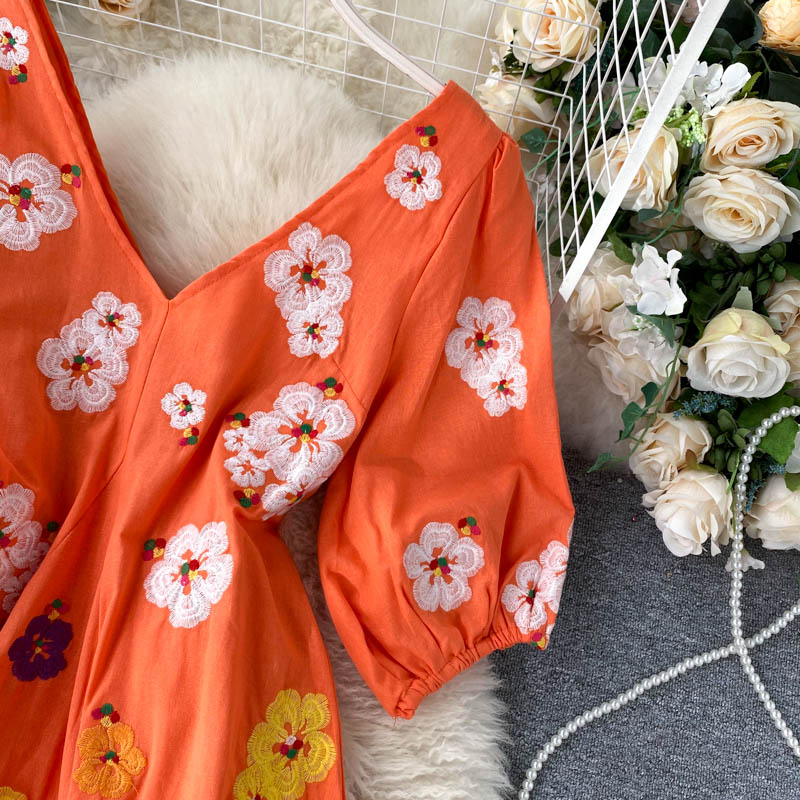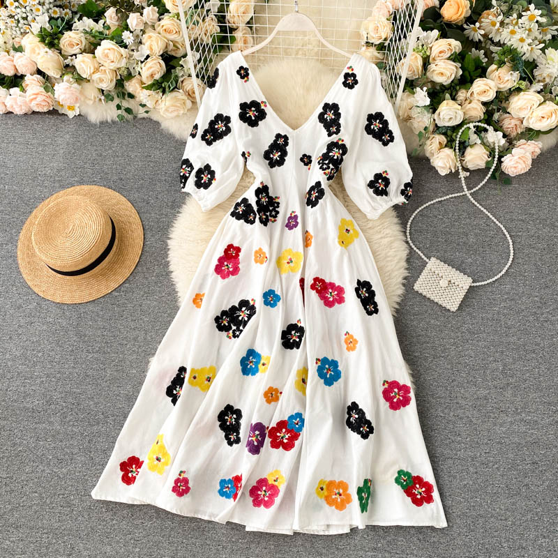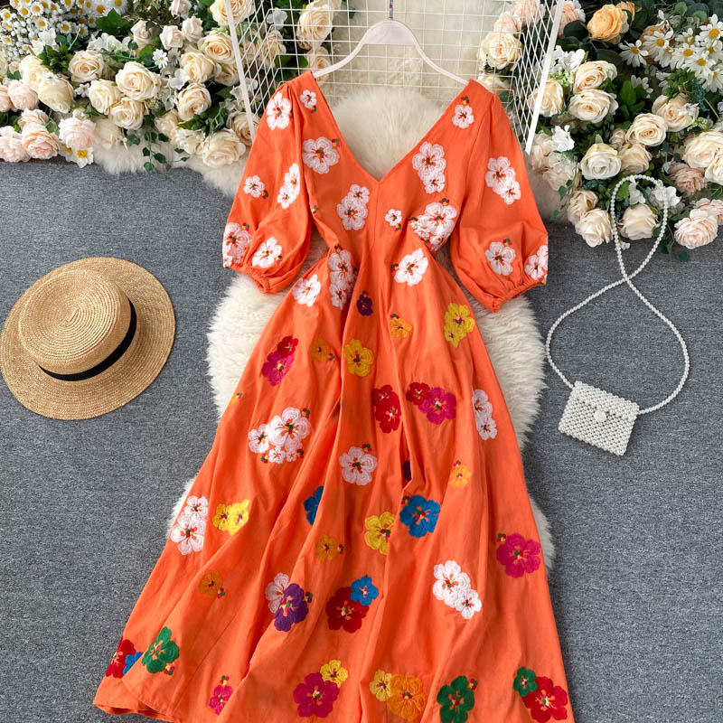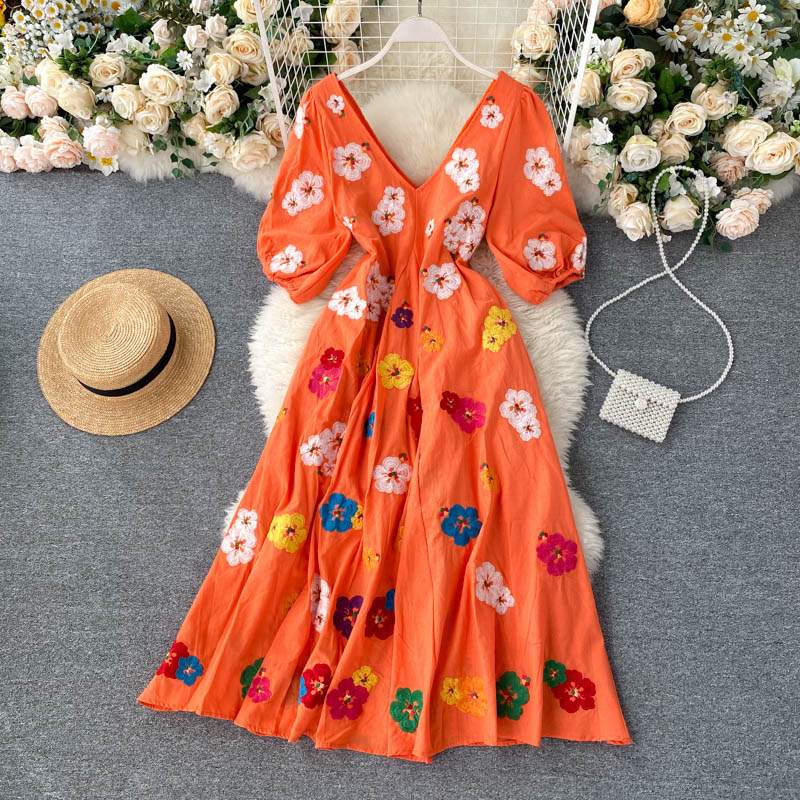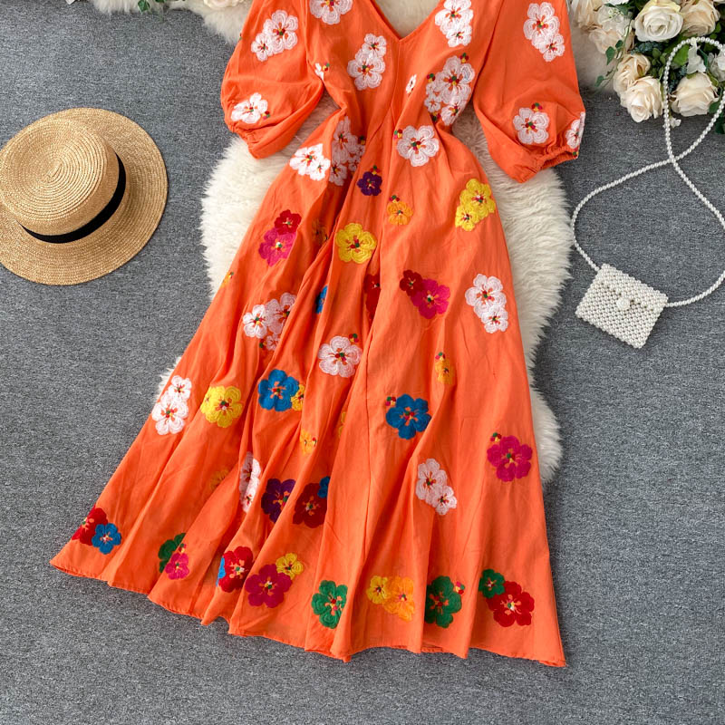 무료배송 / 베니아 꽃자수 볼륨소매 린넨 롱원피스