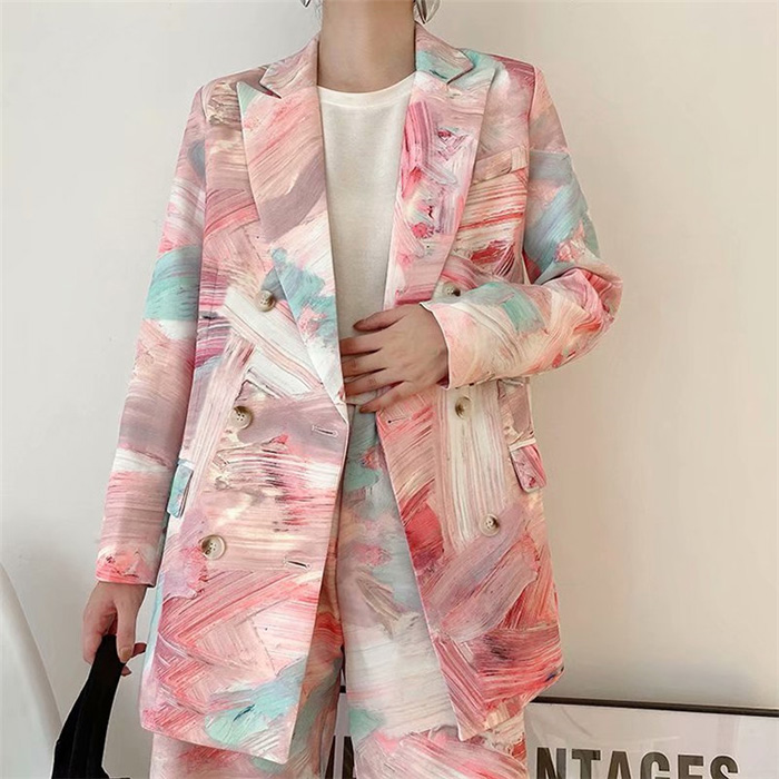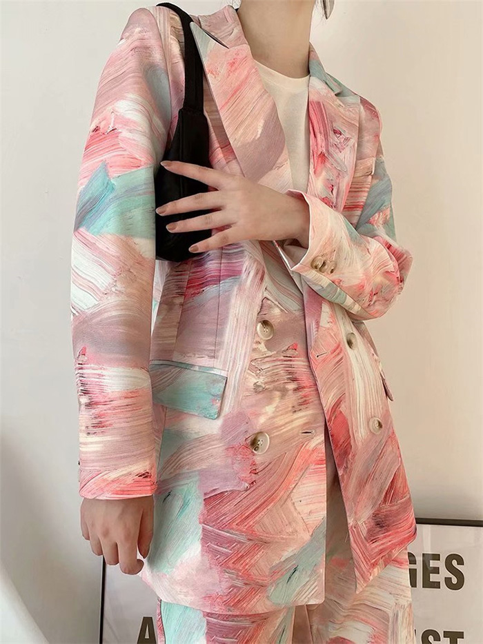 무료배송 / 인터말론 핑크 스크래치 유니크 패턴 자켓