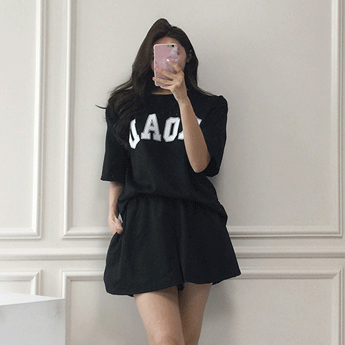 국내배송 / 브레시 영문 박시 티셔츠 치마바지 트레이닝 세트