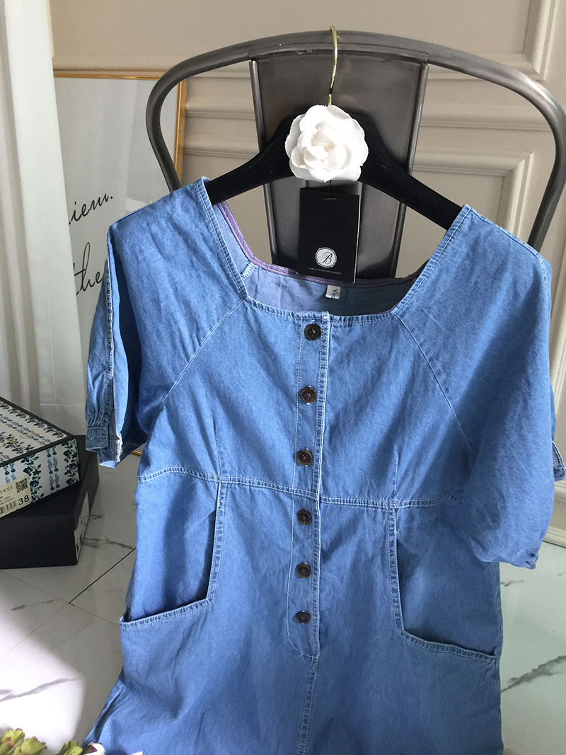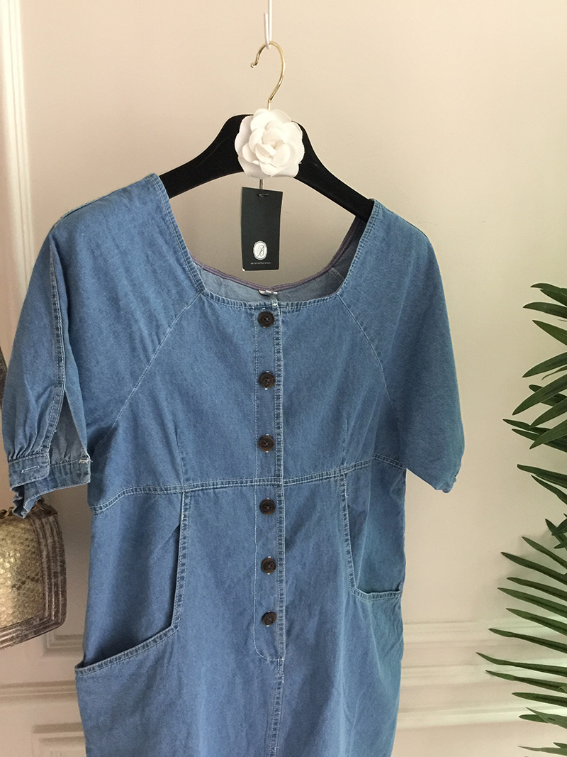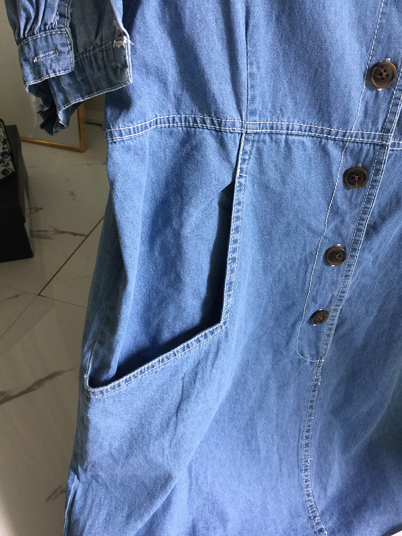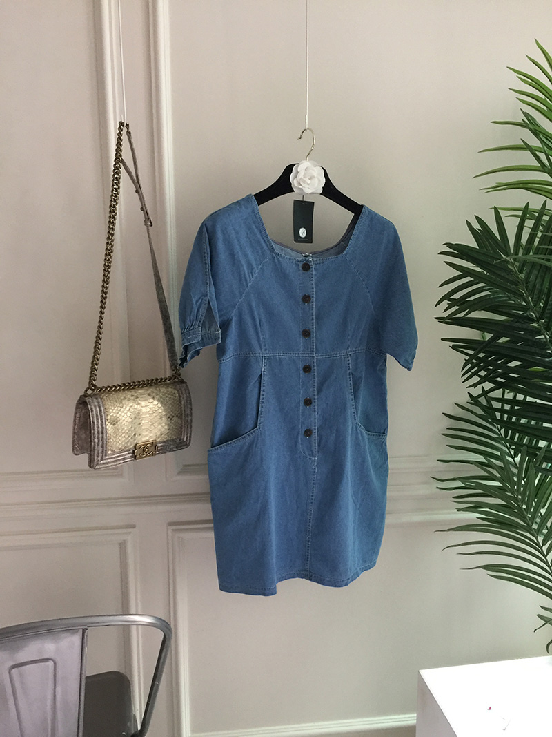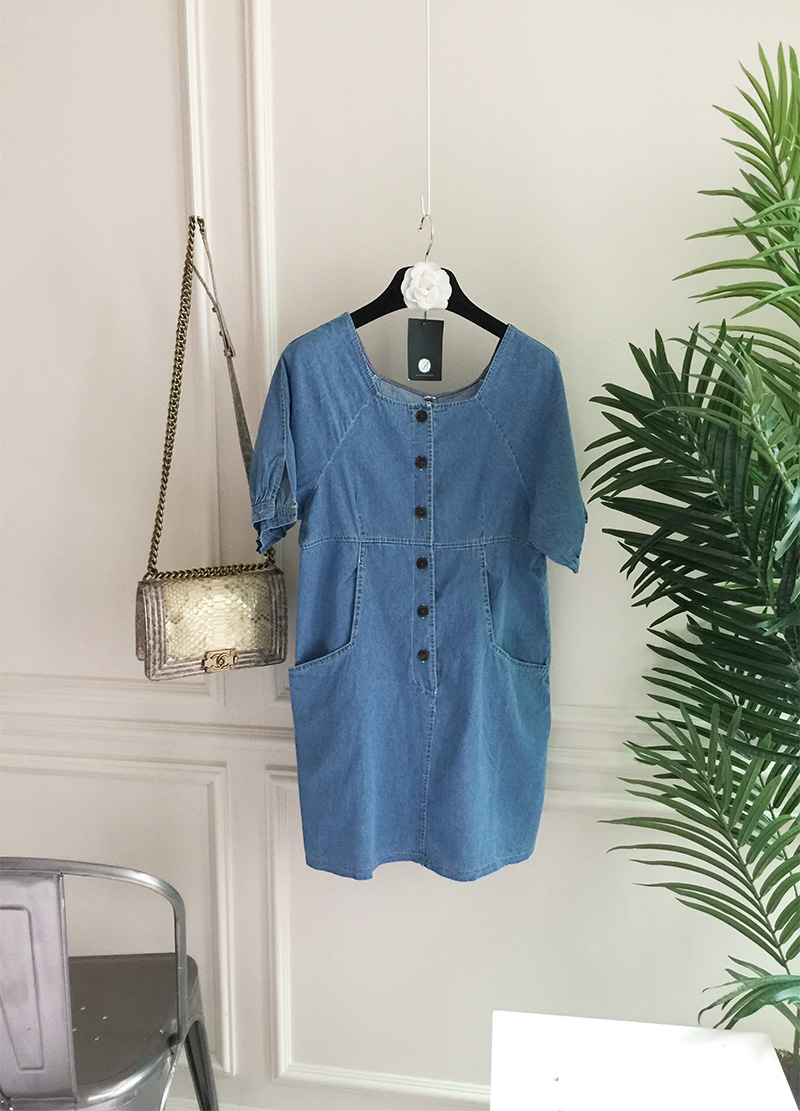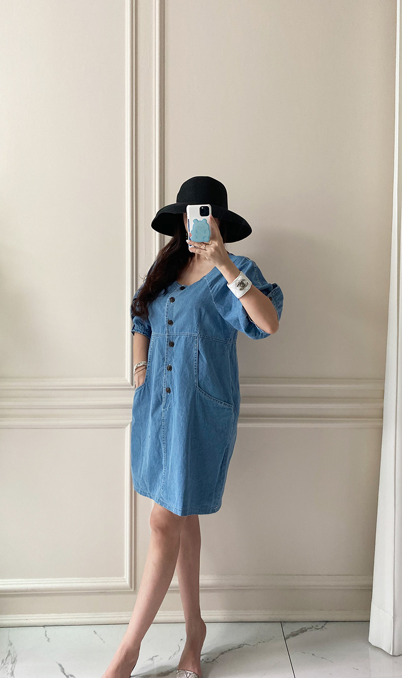 국내배송 / 로모네 볼륨소매 버튼 루즈핏 청 원피스
