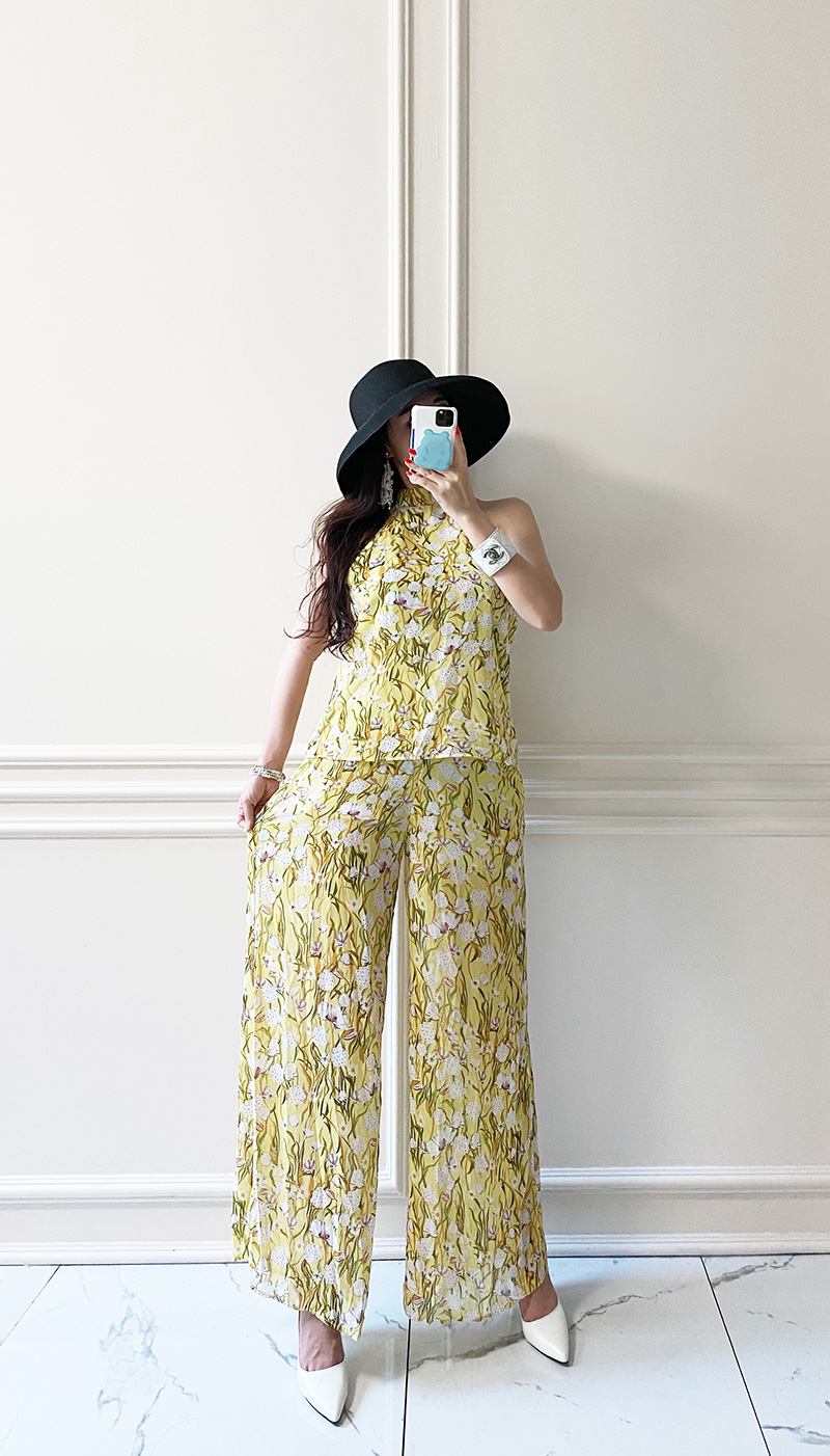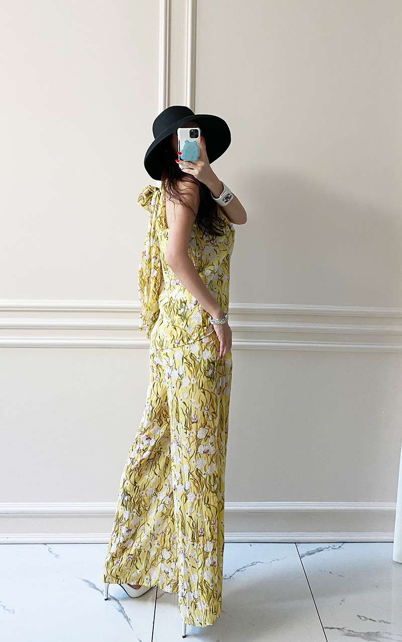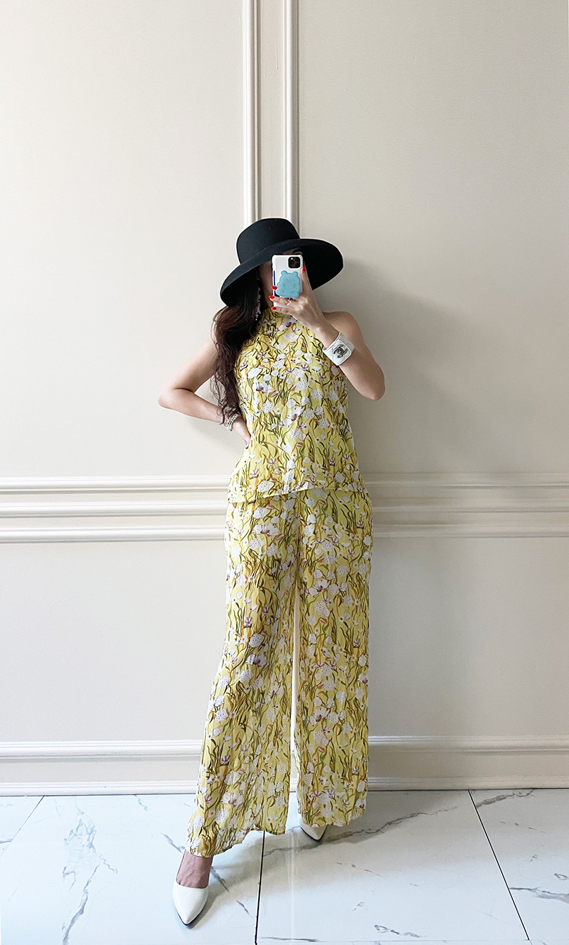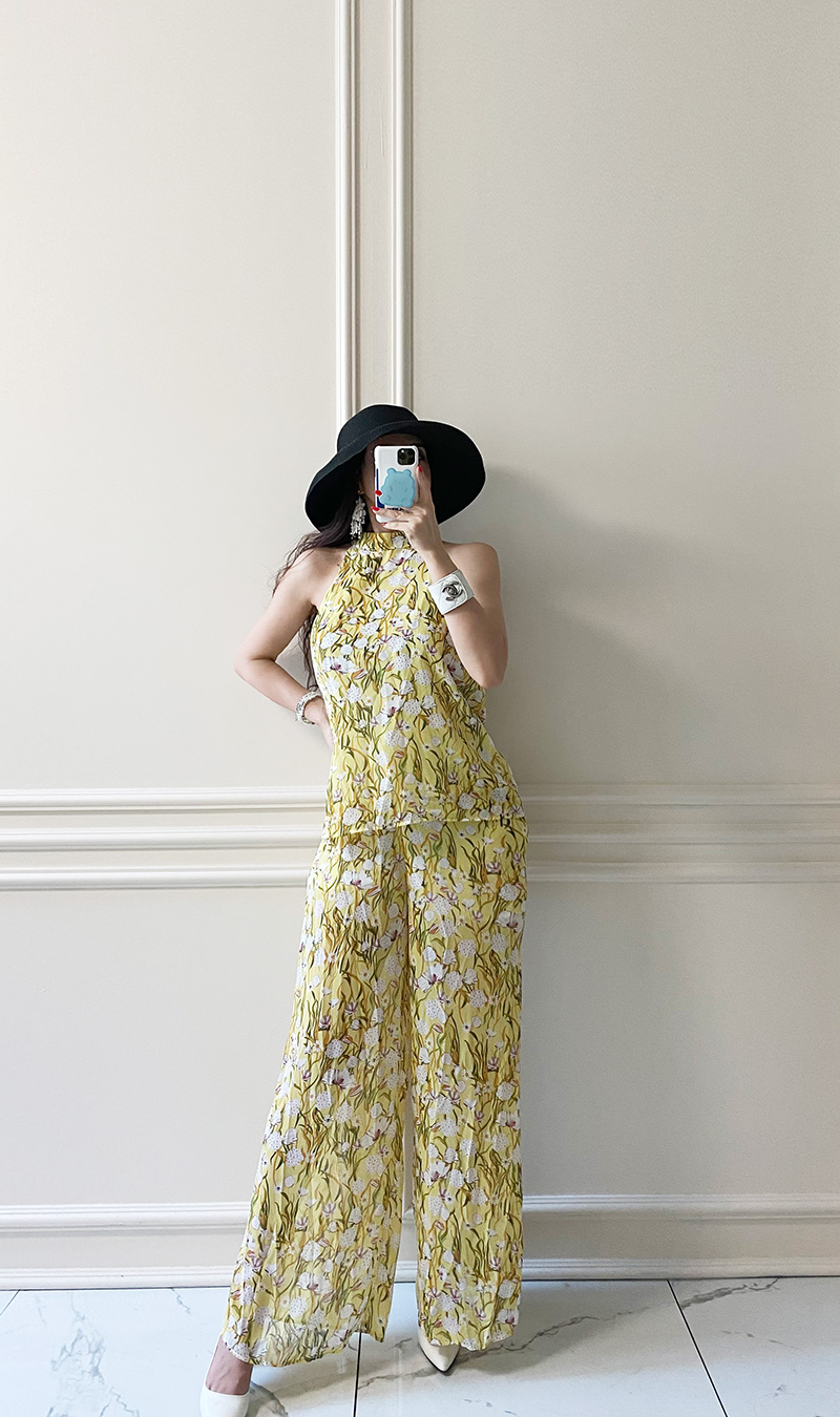 무료배송 / 르카제 홀터넥 쉬폰 플라워 블라우스 와이드 팬츠 세트