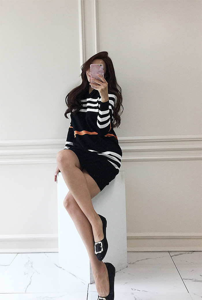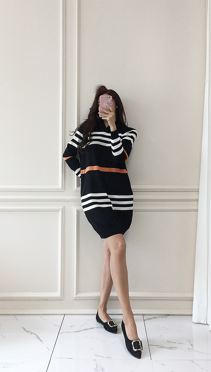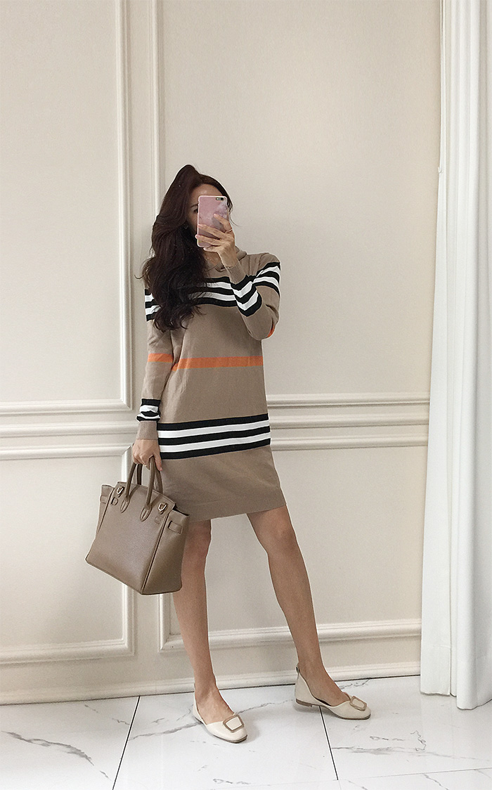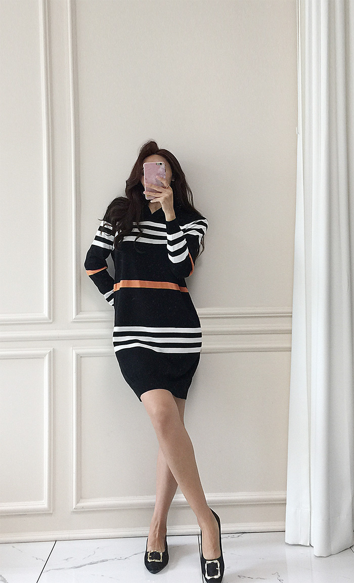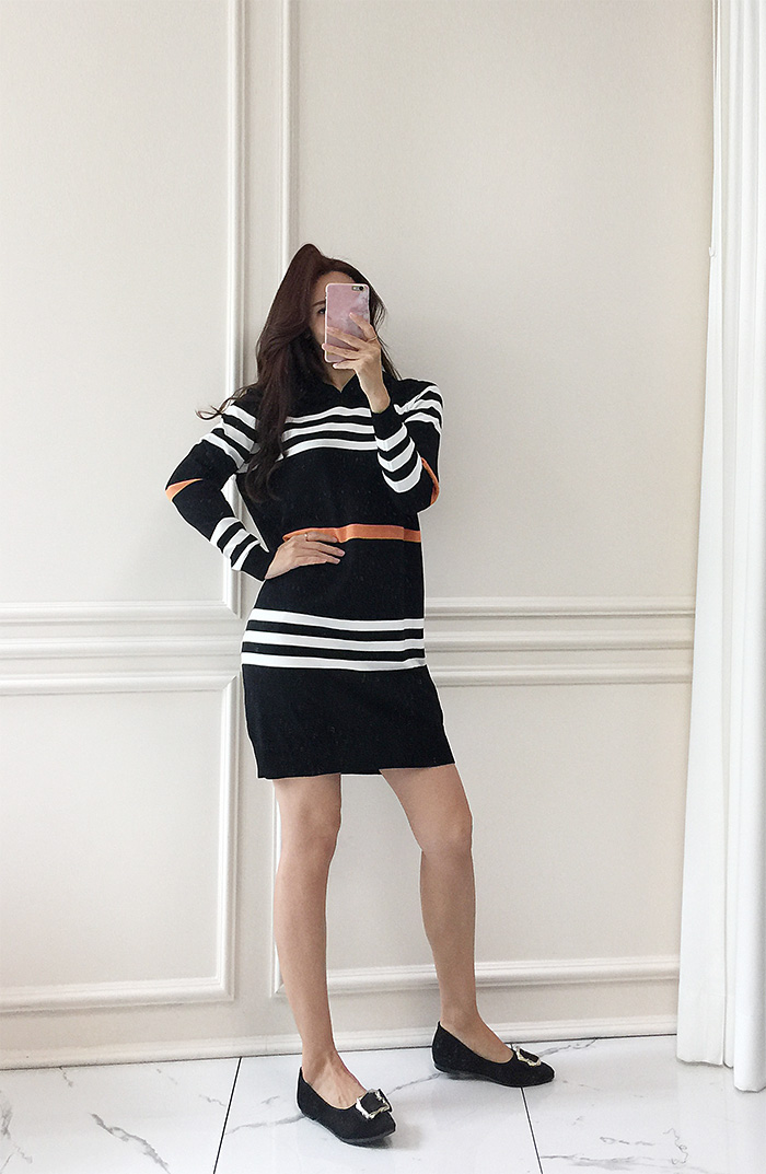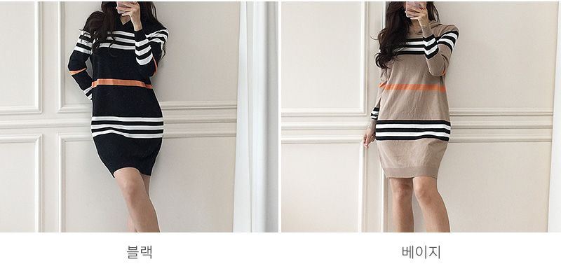 국내배송 / 에브라토 단가라 후드 니트 원피스