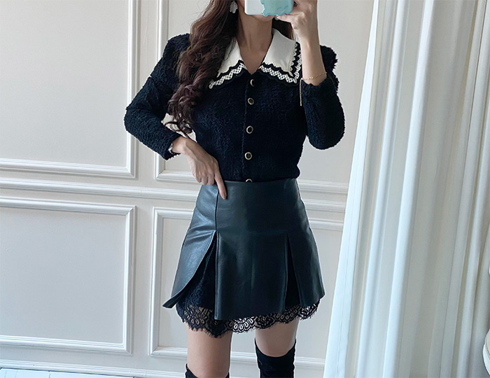 국내제작 / 세라티 레이스 레더가죽 치마바지 - 2컬러