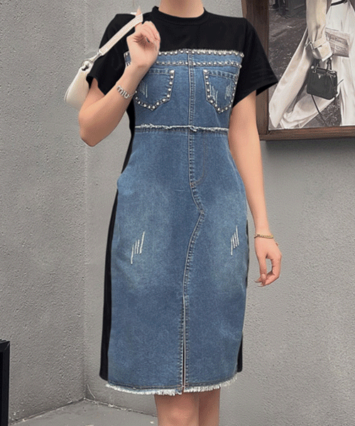 - 다이에나 큐빅 장식 데님 배색 원피스( 리뷰 : 0 )